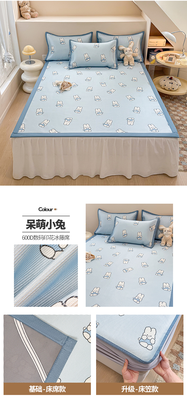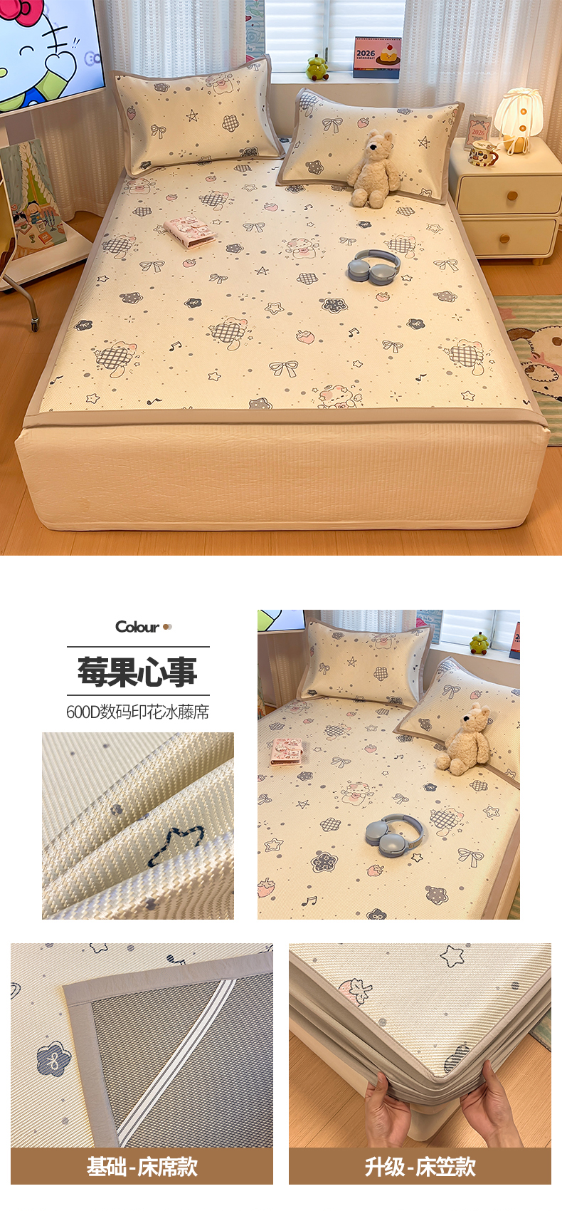 商品名称:(总)懒猫家纺 2026春夏新款600D数码印花冰藤凉席席子-床笠款