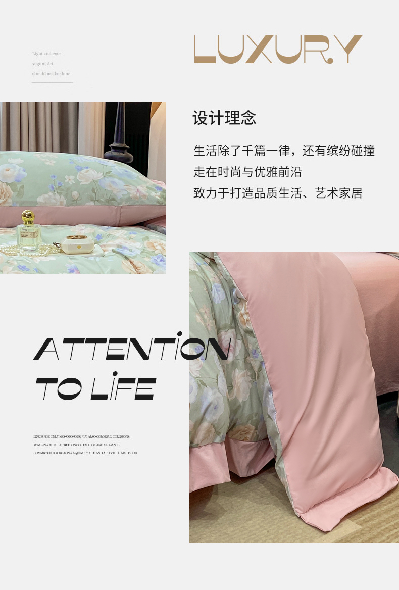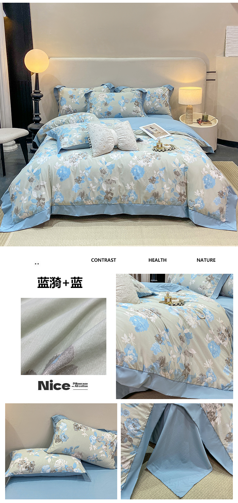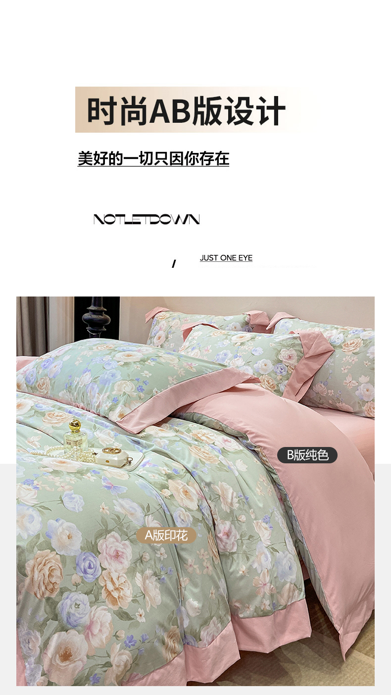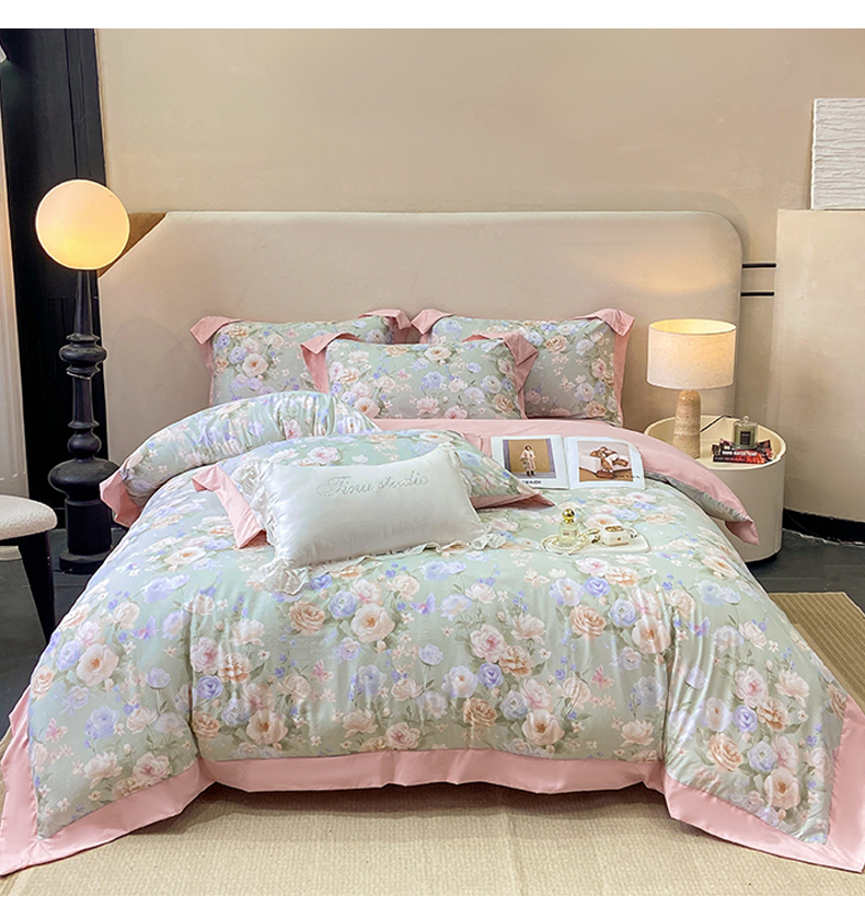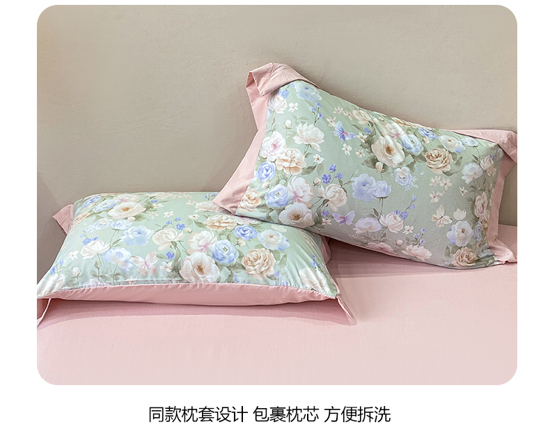 当前位置: 91家纺网 > 商品网购 > 床品套件 > 四件套 > 其它四件套 > 慕木家纺 2026新款A类印花拼角工艺慕斯棉四件套系列(抽空压缩可供跨境)提供买家秀 青妍+粉