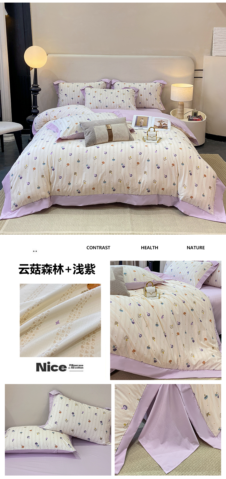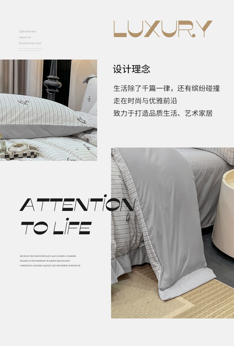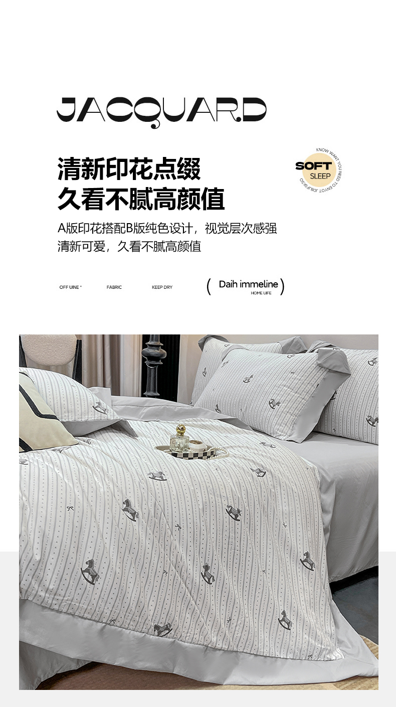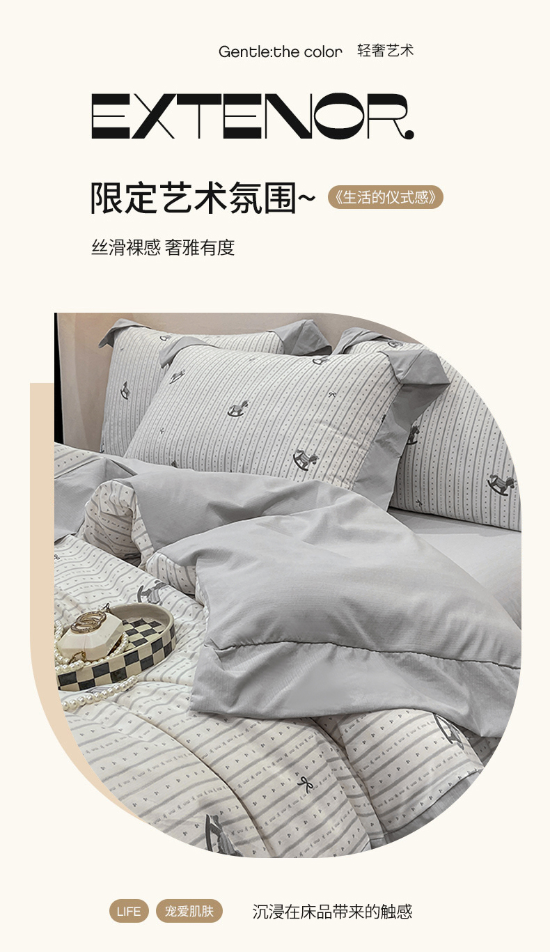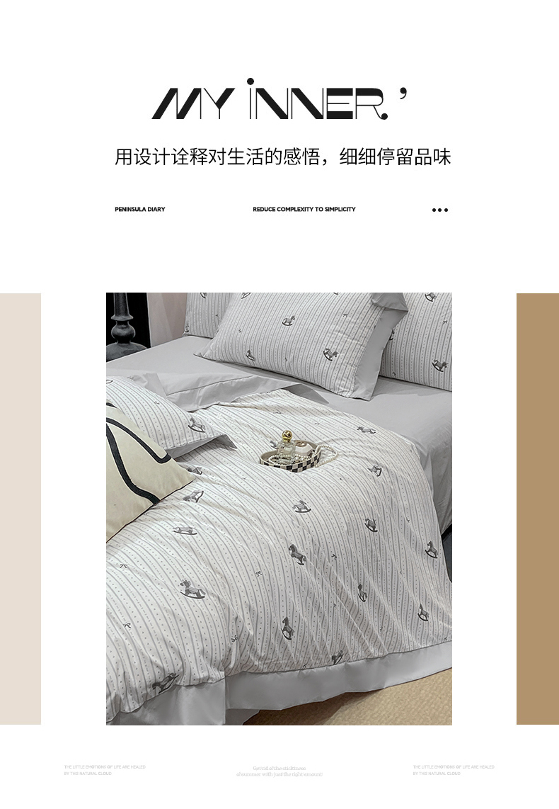 当前位置: 91家纺网 > 商品网购 > 床品套件 > 四件套 > 其它四件套 > 慕木家纺 2026新款A类印花拼角工艺慕斯棉四件套系列(抽空压缩可供跨境)提供买家秀 木马童谣+灰