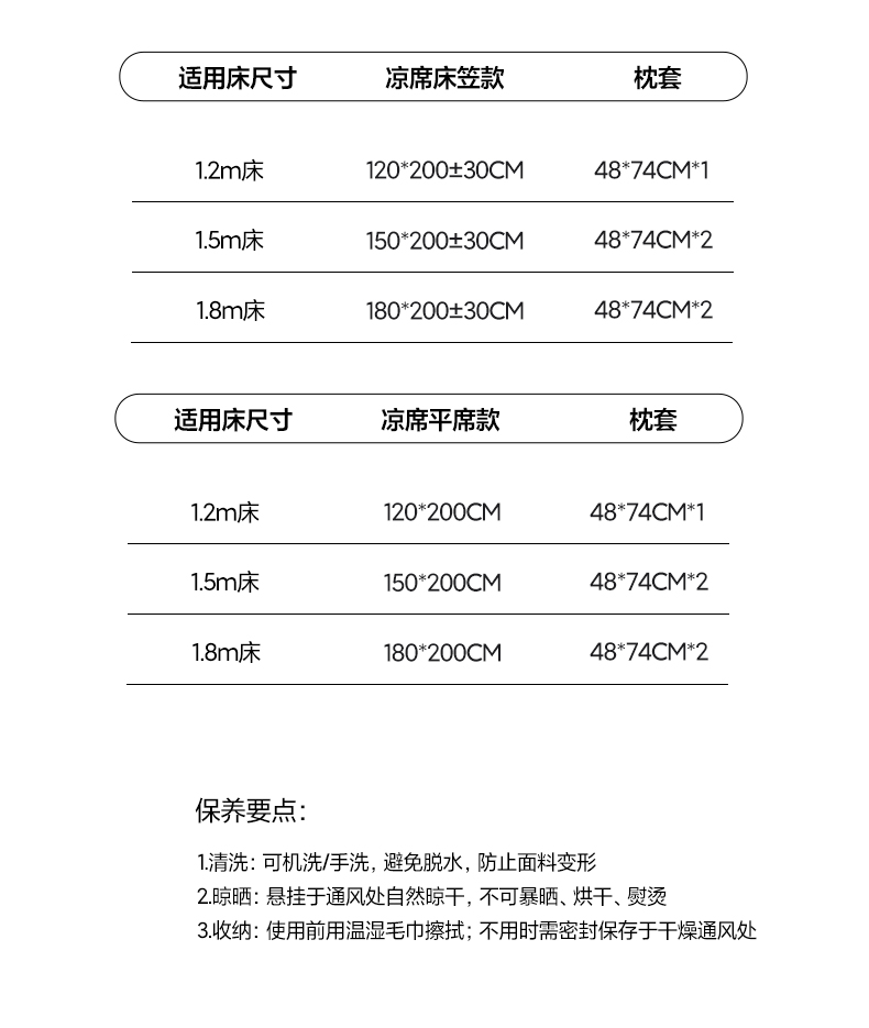 180x200cm凉席+枕套一对