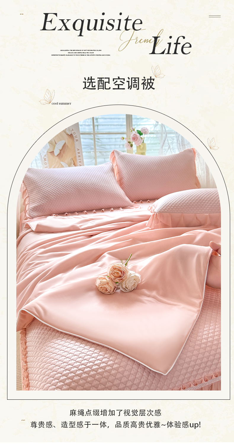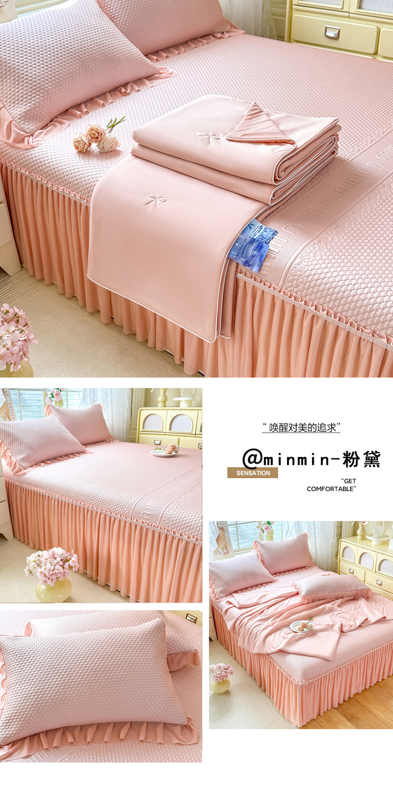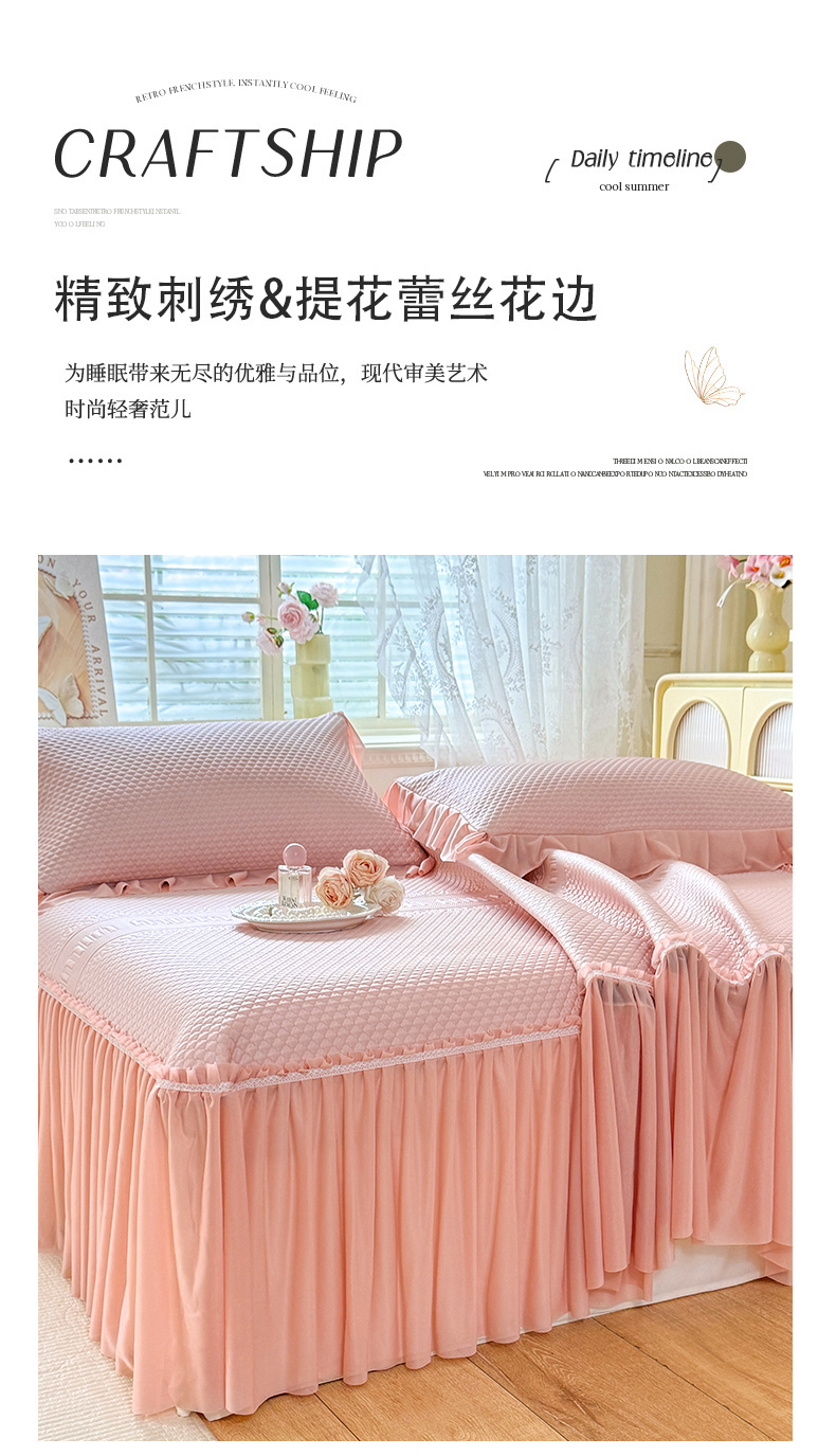 当前位置: 91家纺网 > 商品网购 > 床品套件 > 四件套 > 夏被四件套 > (总)苏米娜家纺SUMINA 2026新款高克重泡泡席乙纶中分子冰豆豆蕾丝床裙夏季冰丝软席四件套-minmin