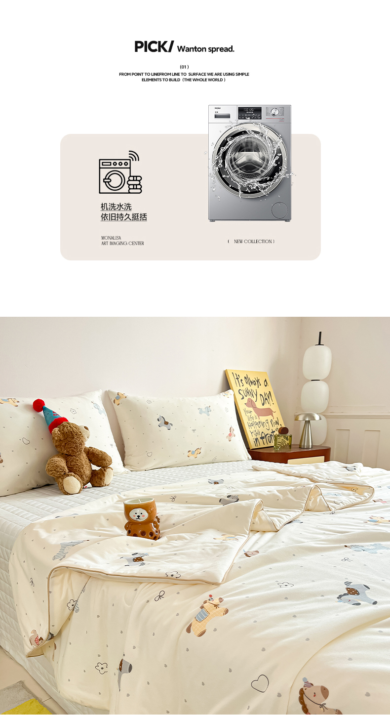 (总)一加一 2026春夏新款云小棉贴布绣花大豆夏凉被空调被夏被四件套,波点小狗,波点熊仔,蜜桃小兔,抹茶熊猫,奶油小鳄鱼