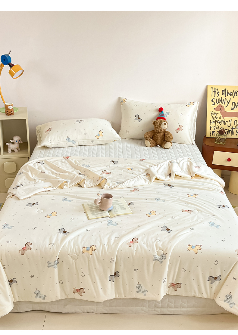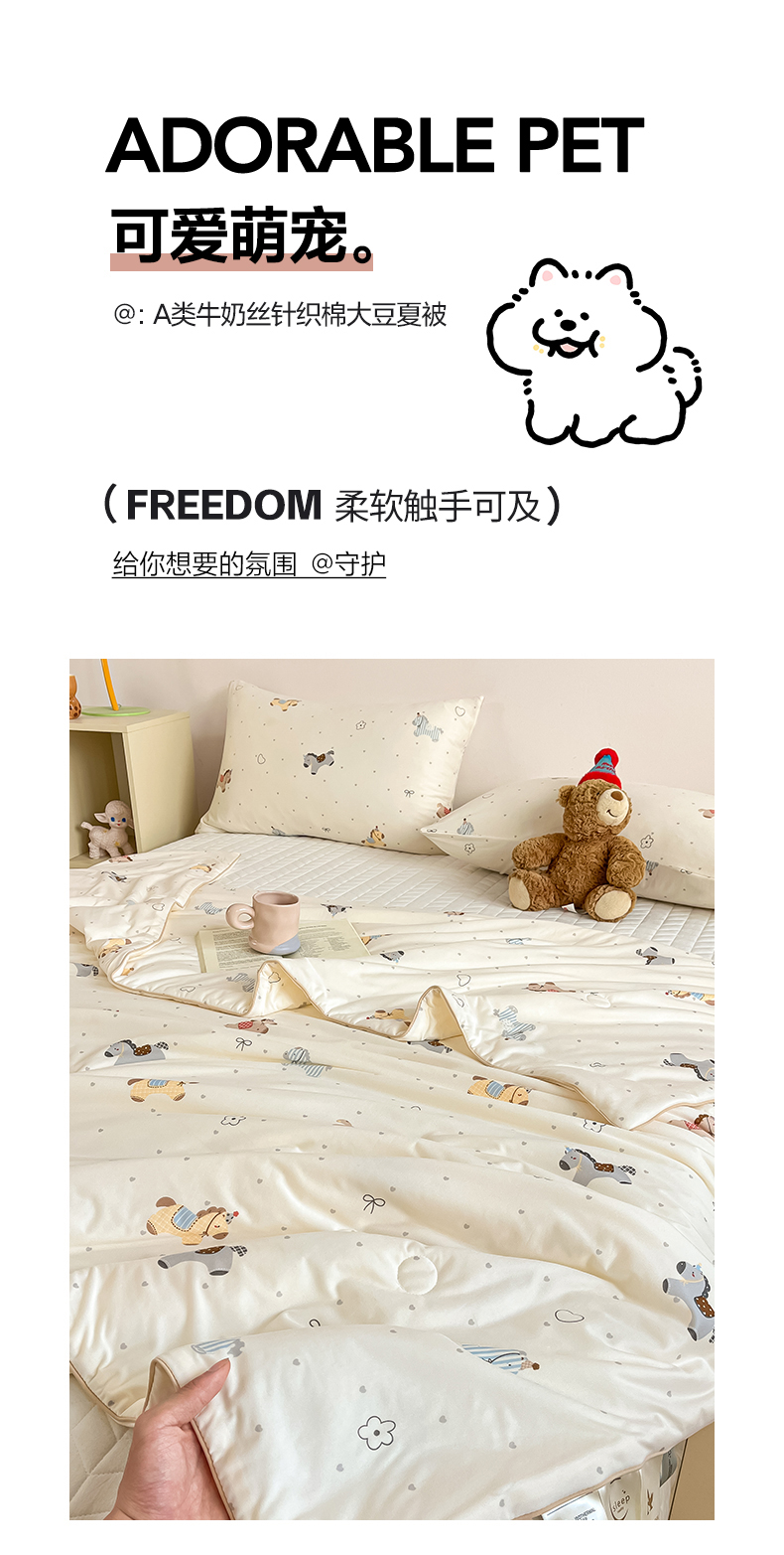 (总)一加一 2026新款A类牛奶丝针织棉大豆夏被夏凉被空调被,哈尼小狗,花径小狗,可乐修狗,快乐小马驹,美拉德熊,你好鸭!,条纹西高地,小象来喽,幸运加马