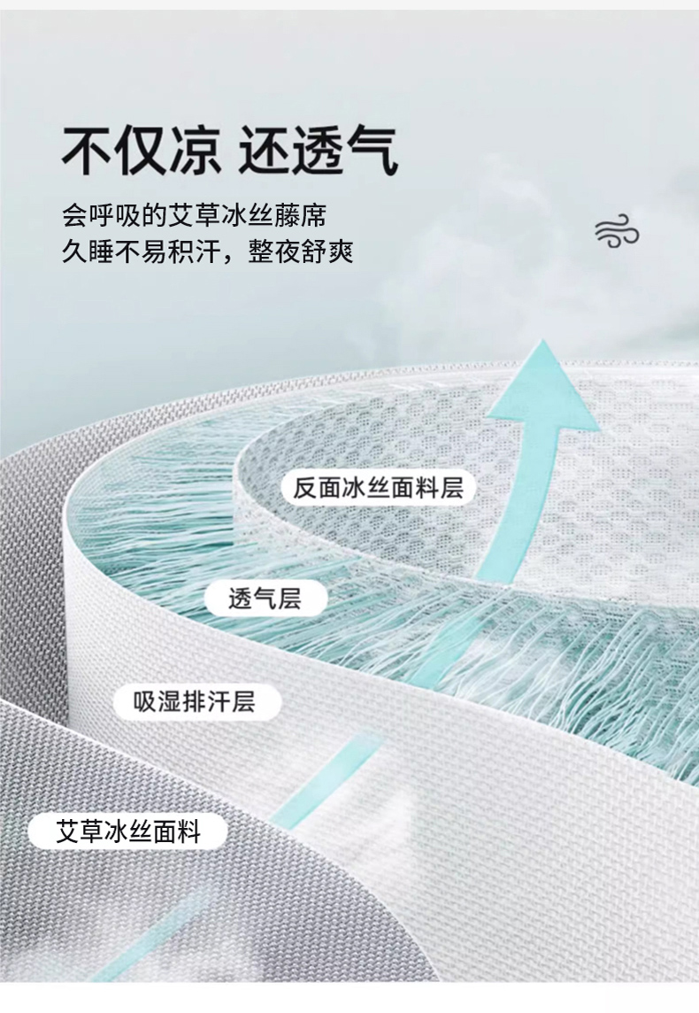 • 91家纺网 家纺一手货源 找家纺 女子家纺 2026新款A类艾草养生席席子凉席 冰川蓝-床笠
