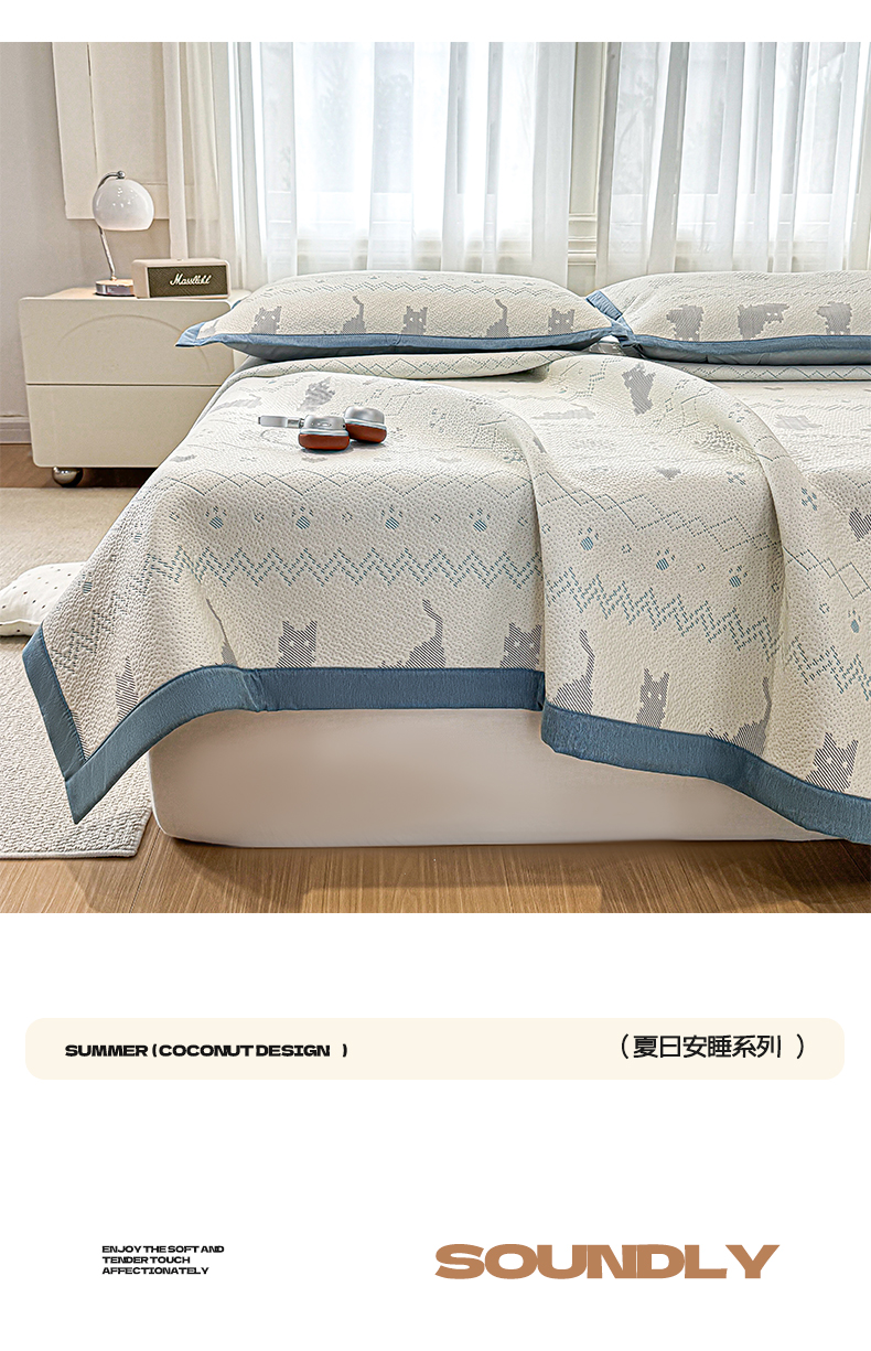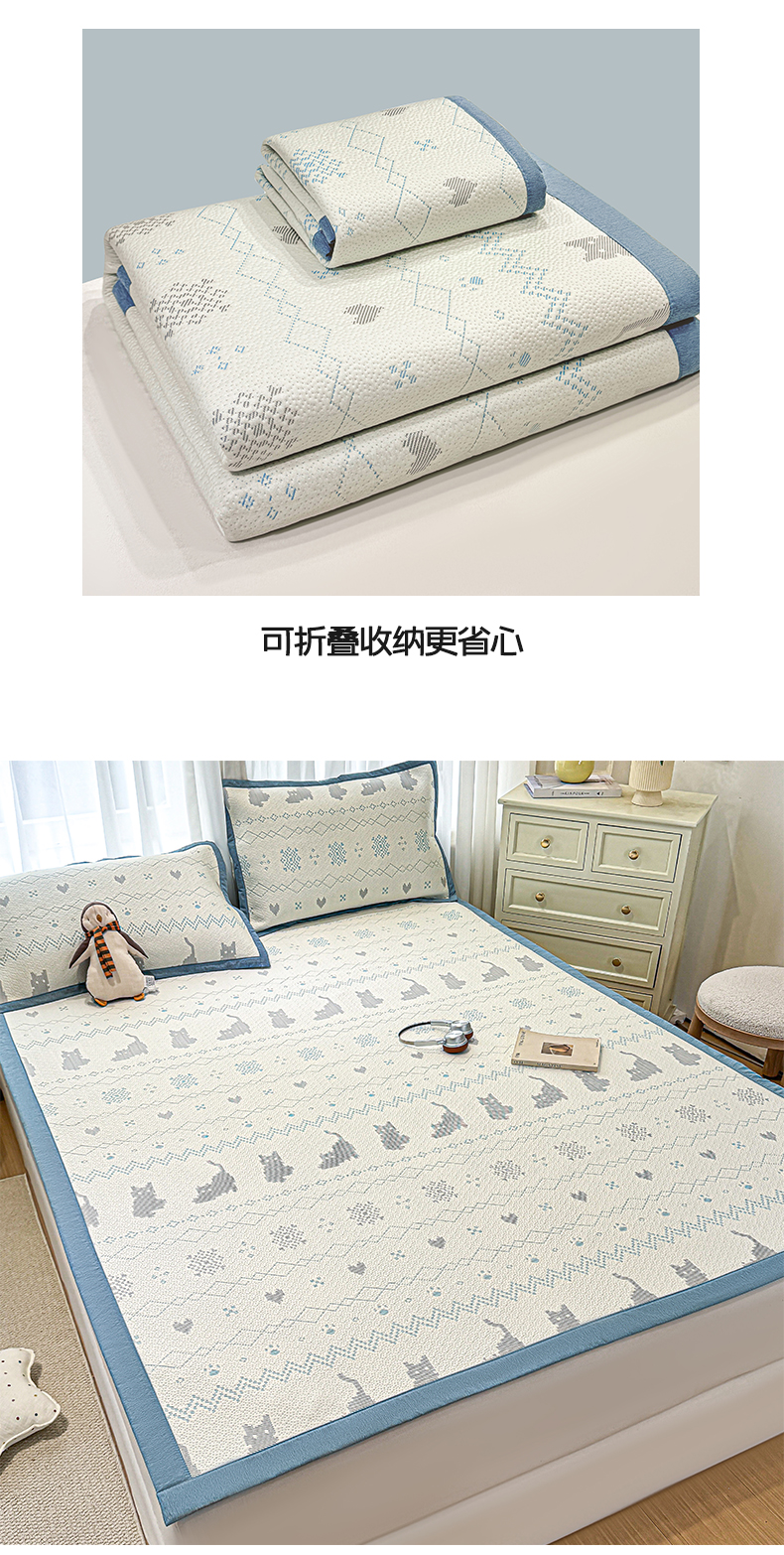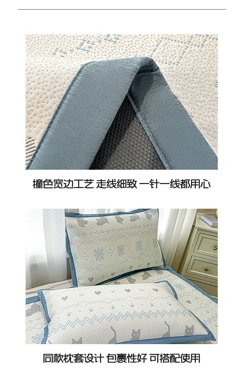 帅露家纺 2026新款A类PE中分子提花软凉席席子 平铺款-猫咪派对蓝
