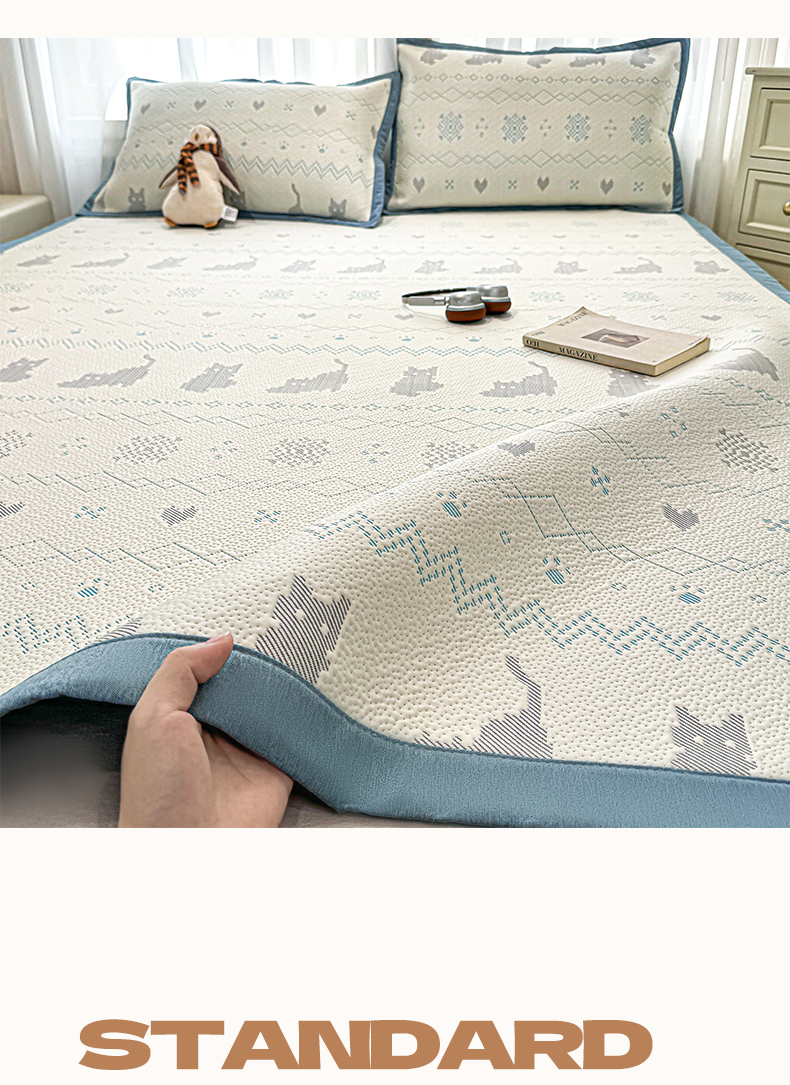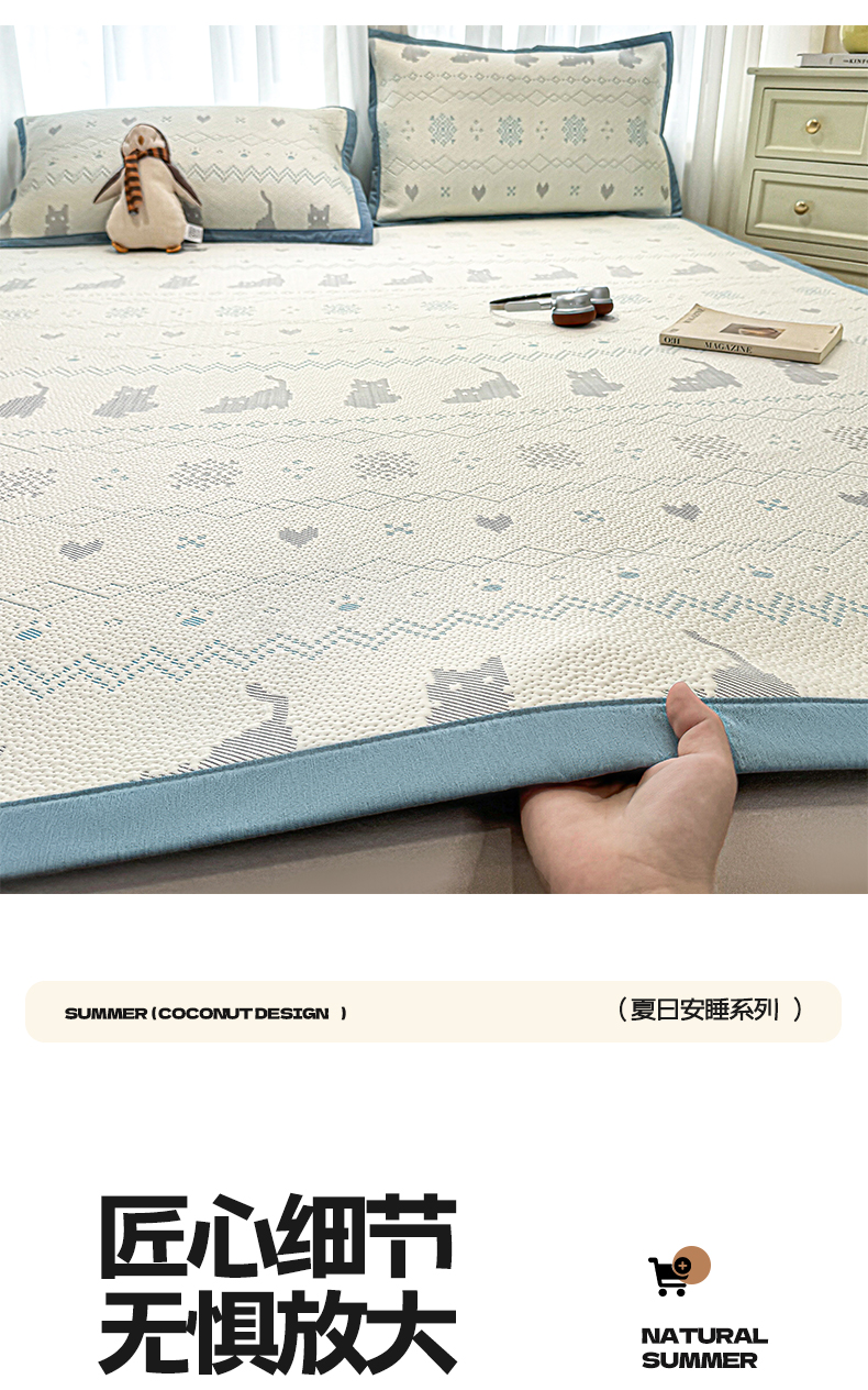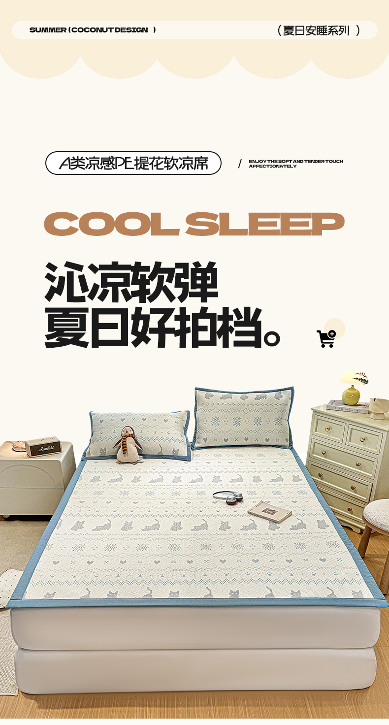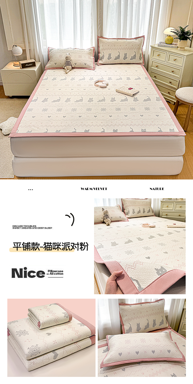 帅露家纺 2026新款A类PE中分子提花软凉席席子 平铺款-猫咪派对蓝