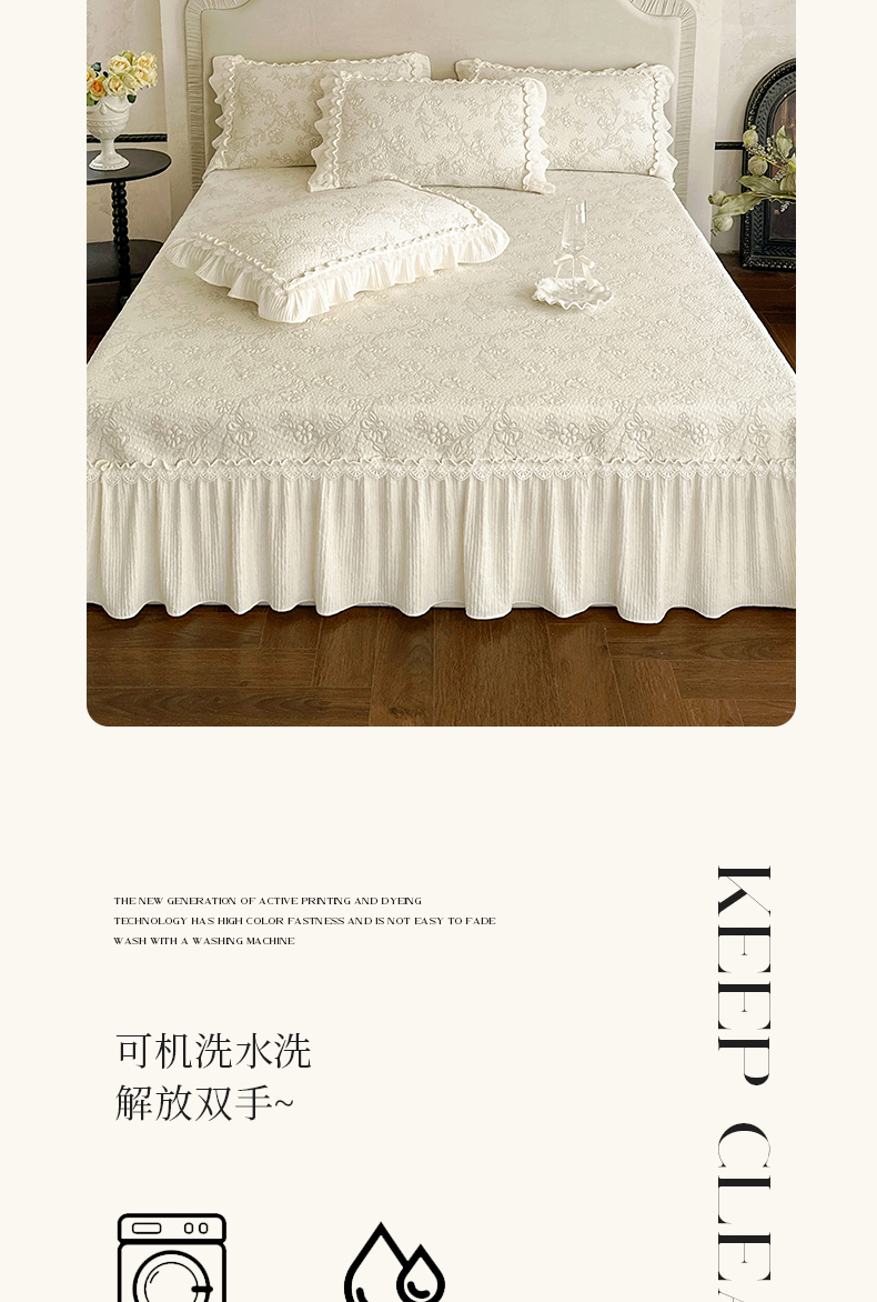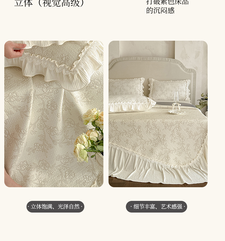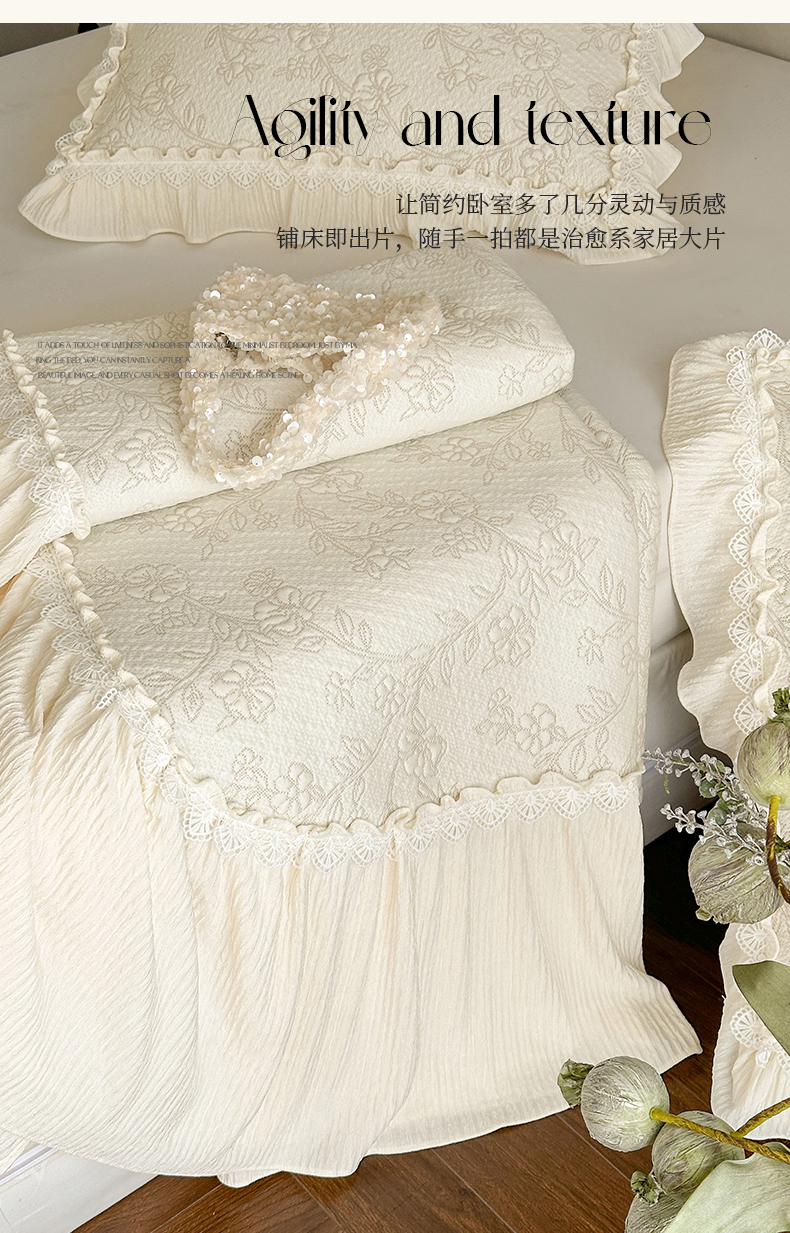 (总)乐朵家居 2025新款 伊莉莎 牛奶绒夹棉床盖四件套,奶白,粉玉