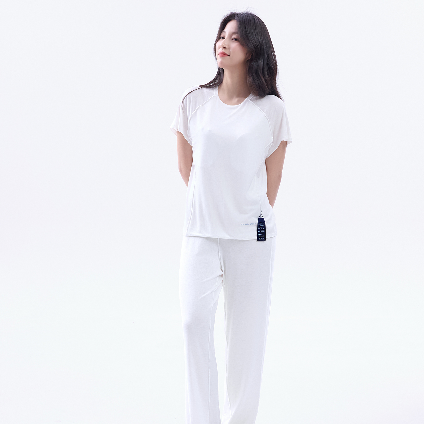 商品名称:唯爱品 2026新款亲肤舒适深睡睡衣--短袖长裤--短袖短裤--三色可选 短袖长裤-柔云白