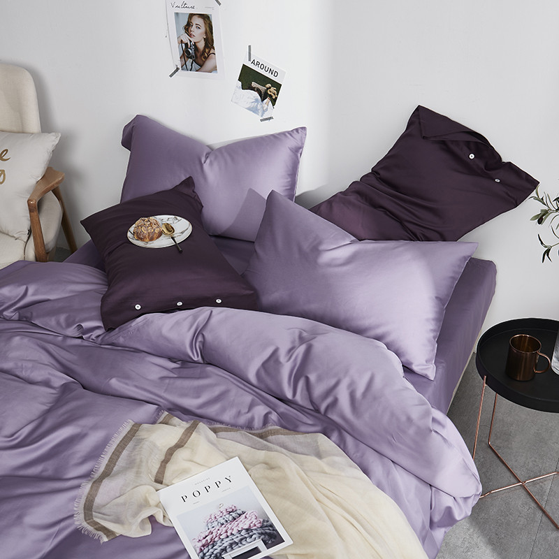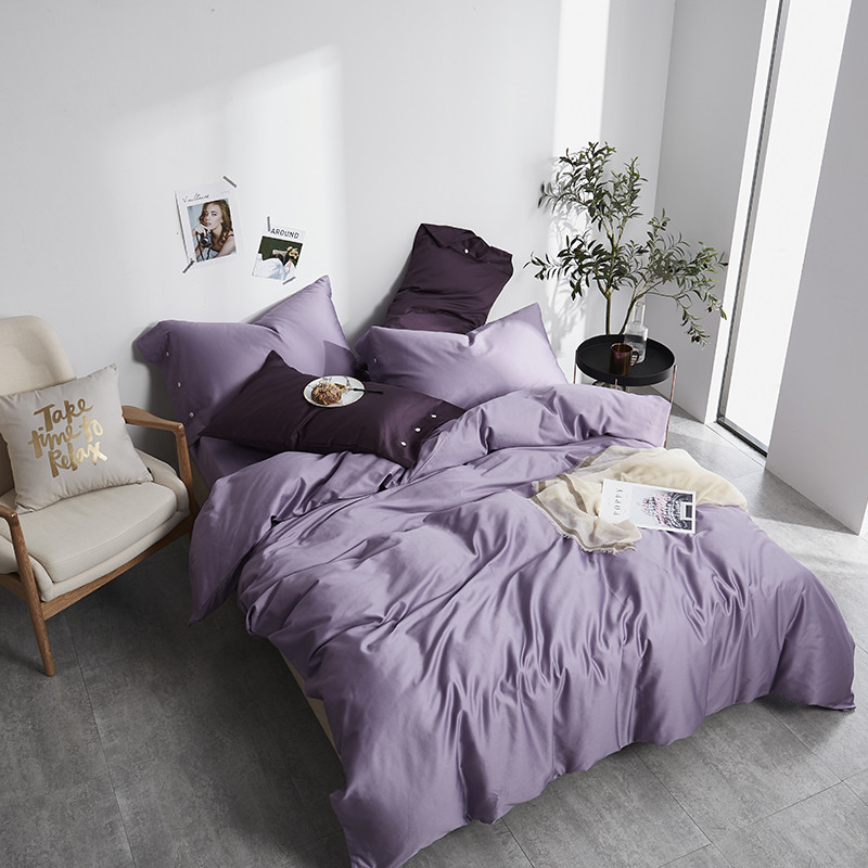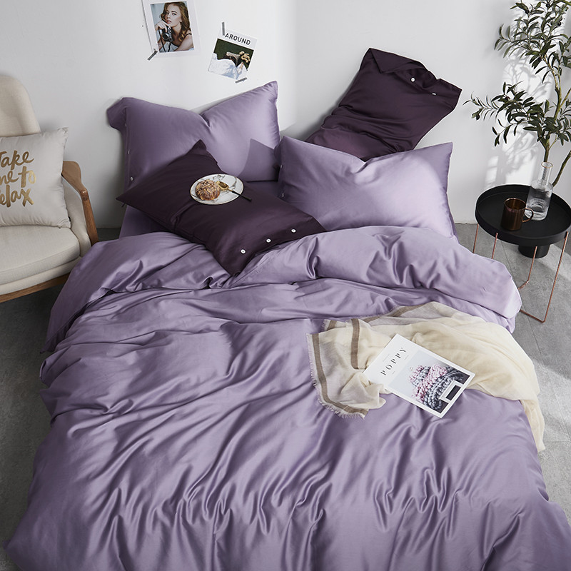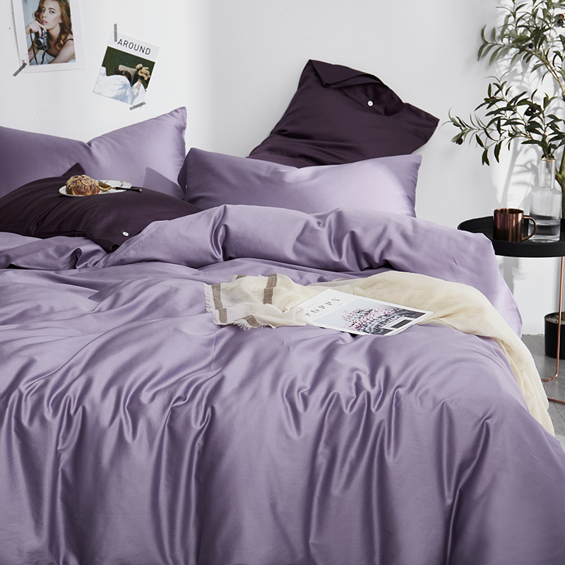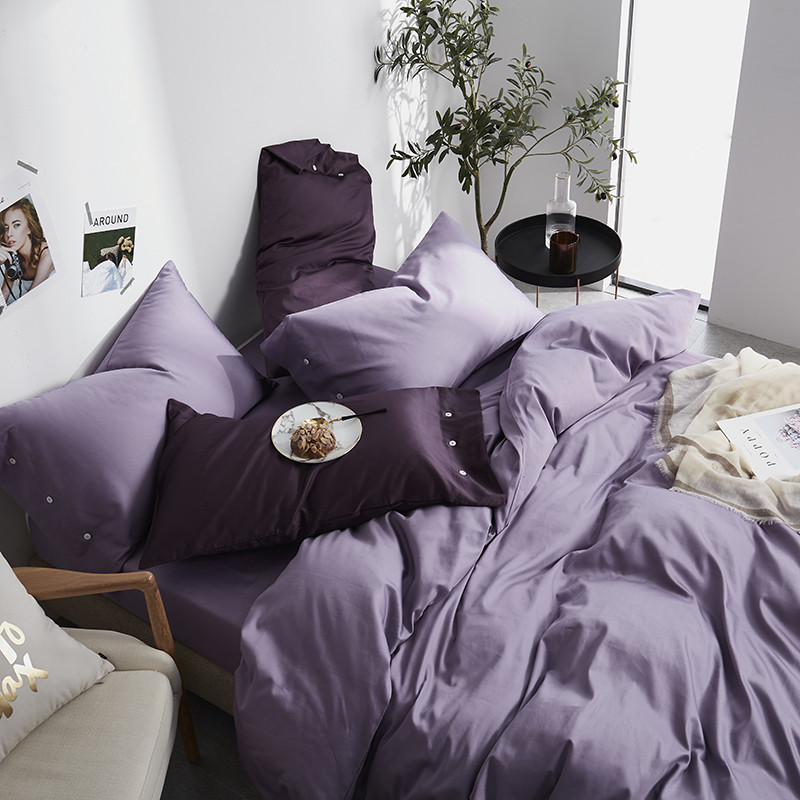 优然居家纺 60支长绒棉纯色四件套高贵紫