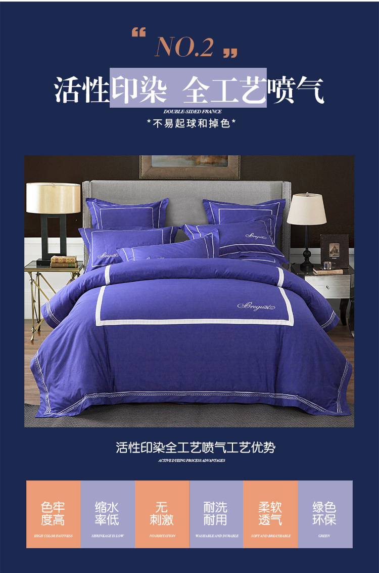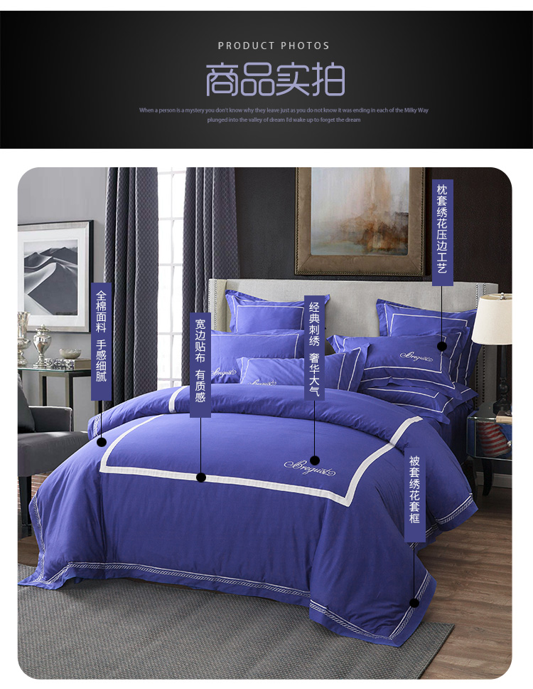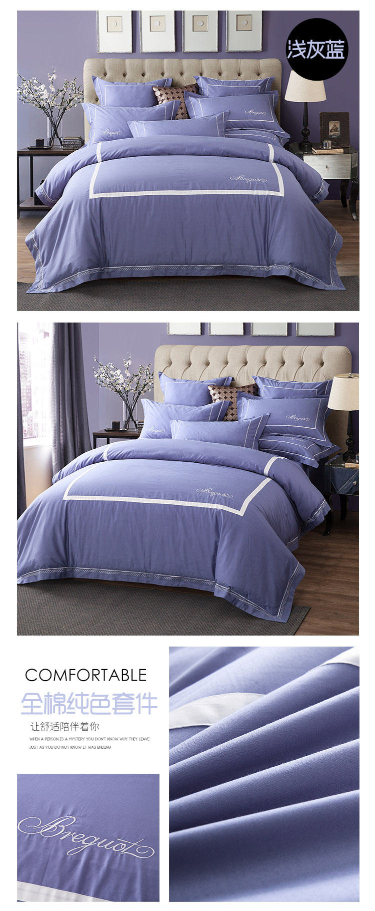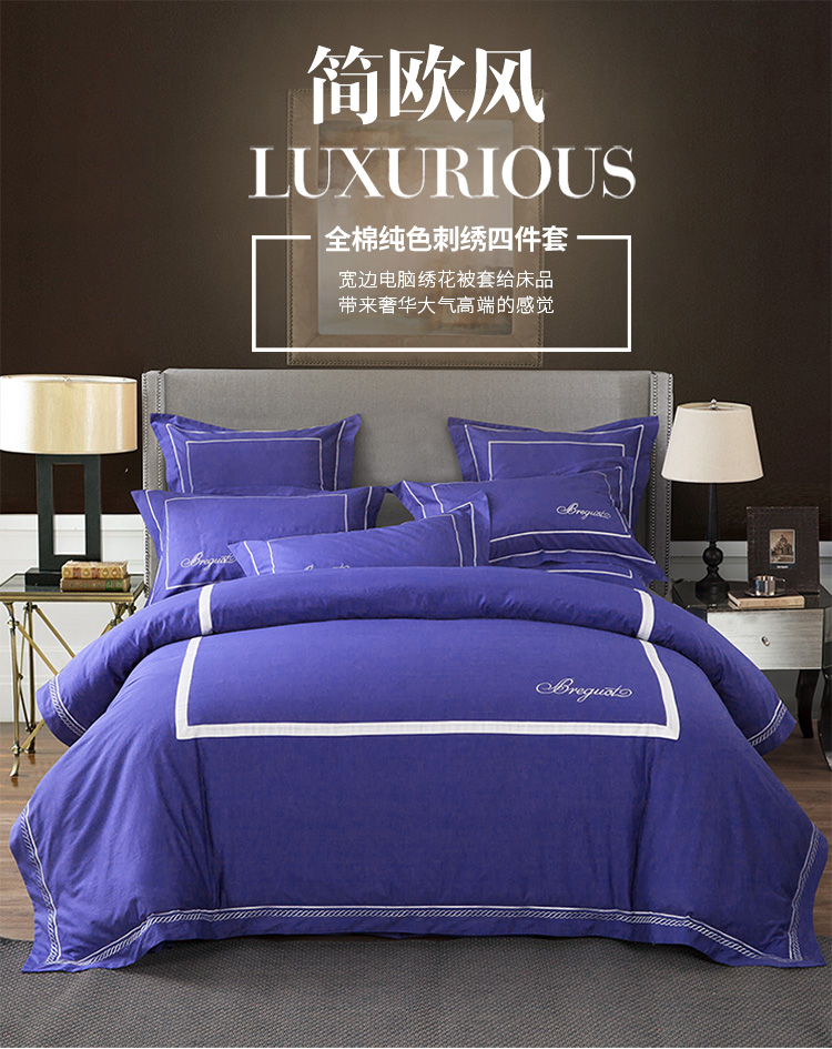 (总)兴美佳家纺 欧式60s贡缎长绒棉刺绣四件套,幽兰古调-蓝,幽兰古调-紫