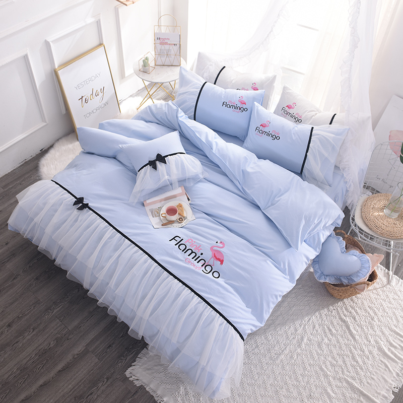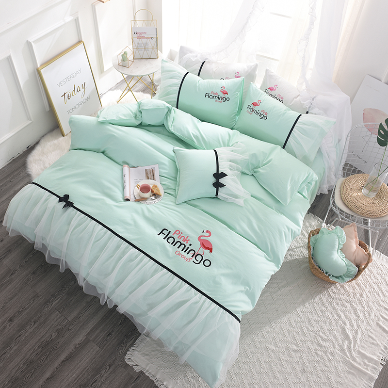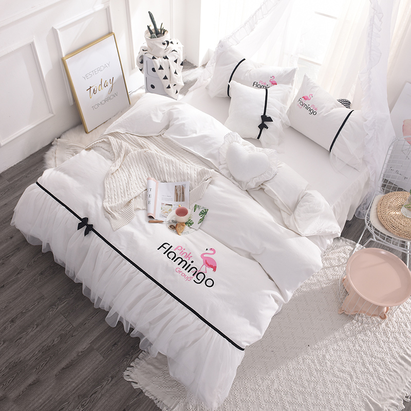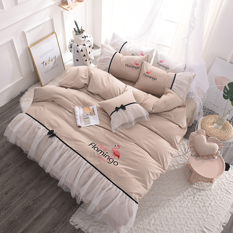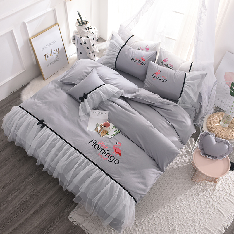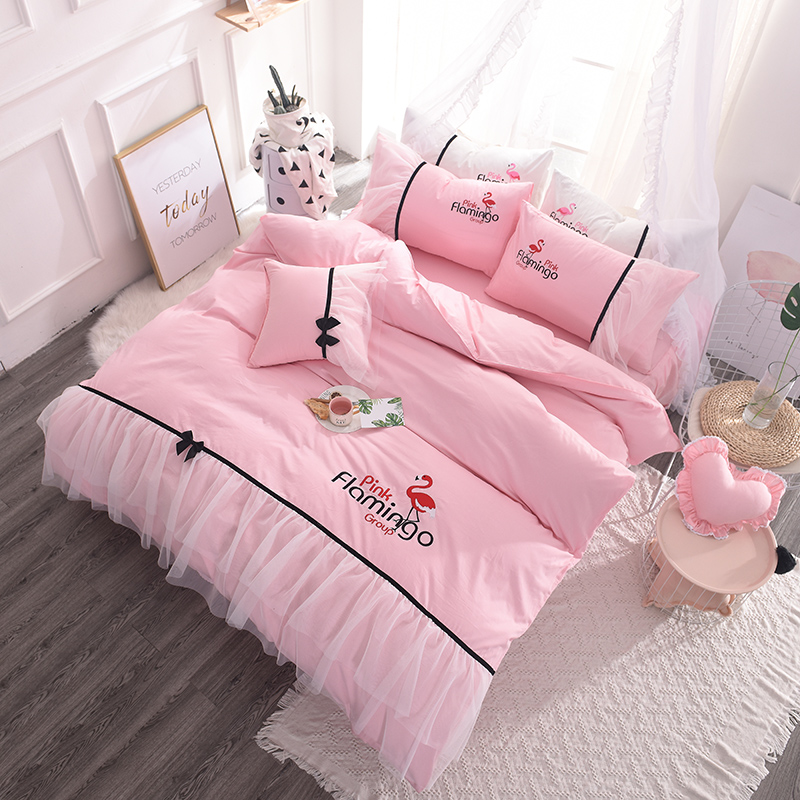 (总)花香四季 ins韩国纱火烈鸟系列套件床单款