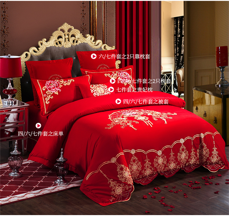 千禧 2024新款贡缎磨毛婚庆绣花多件套 盛世华庭(彩色绣),盛世华庭(彩色绣)