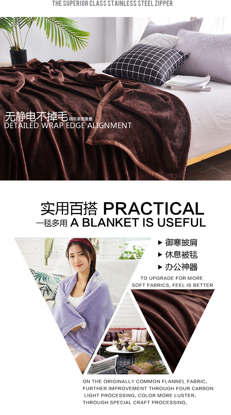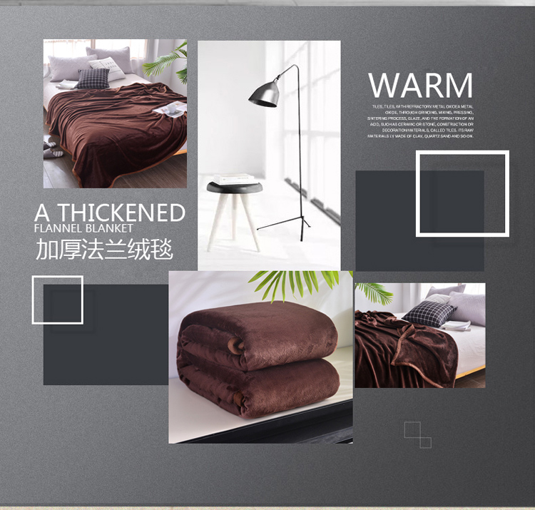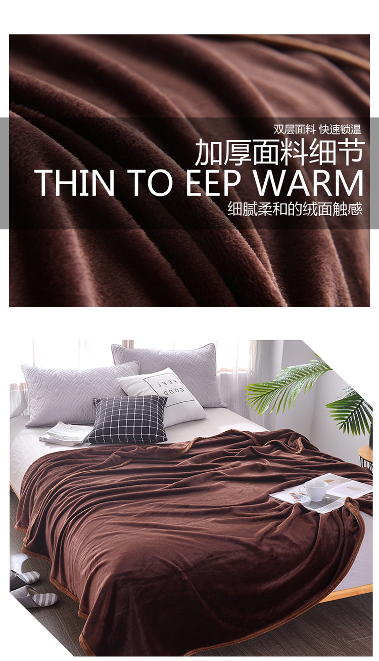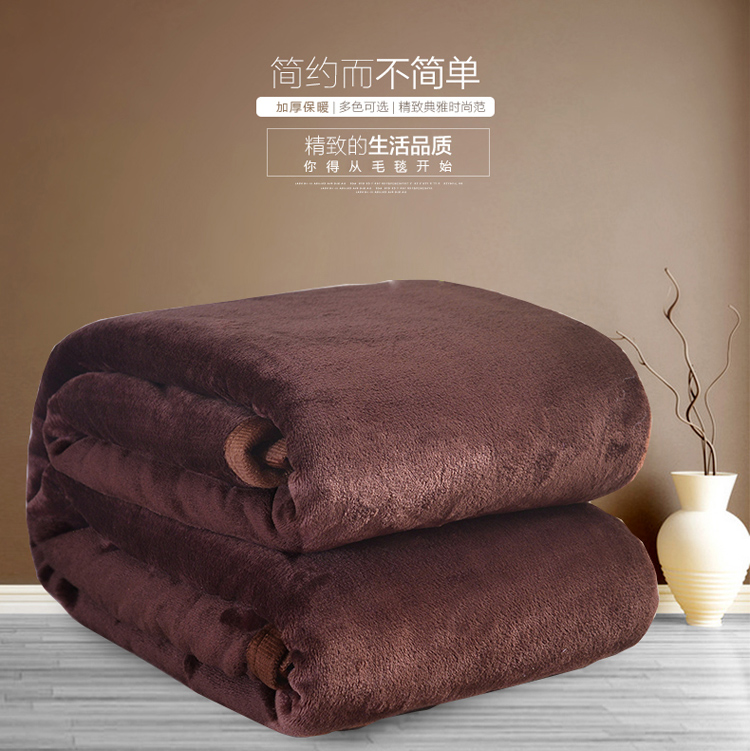 商品名称:雅萱家纺 云貂绒法兰绒珊瑚绒加厚毛毯纯色毯 深咖