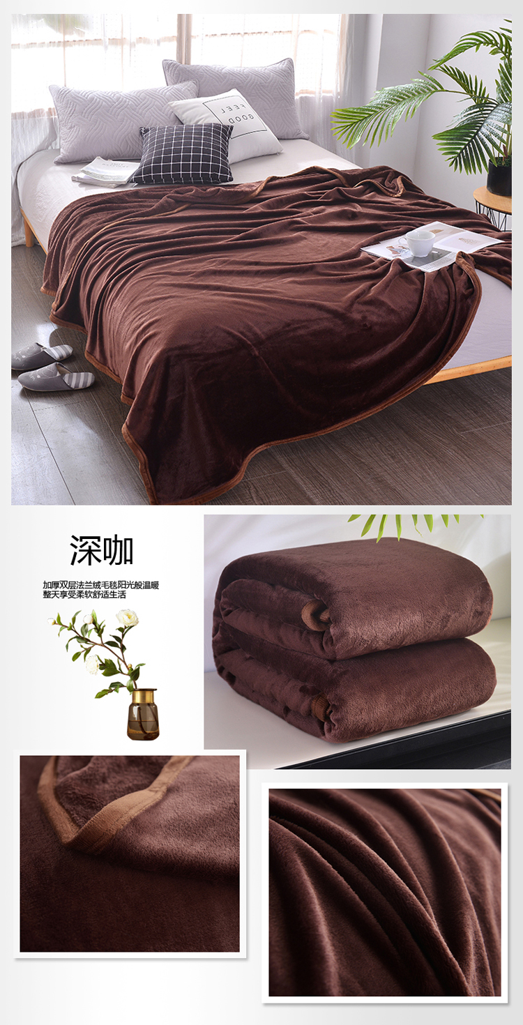 雅萱家纺 云貂绒法兰绒珊瑚绒加厚毛毯纯色毯 深咖