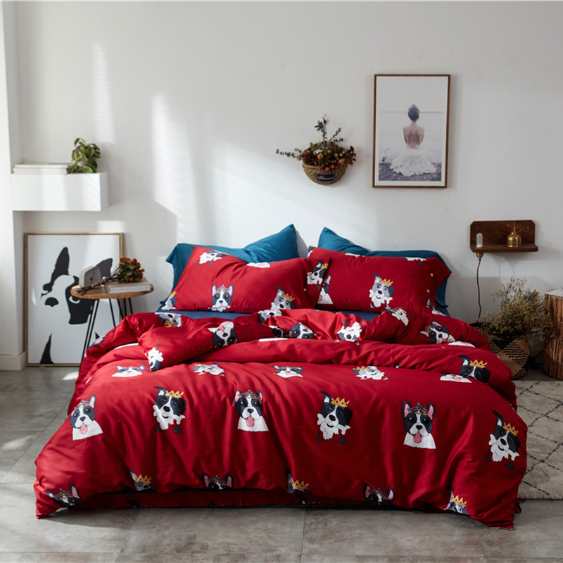 (总)优然居家纺 2025春夏新款木耳边喜字蝴蝶结小爱心复古红四件套-小欢喜,小欢喜