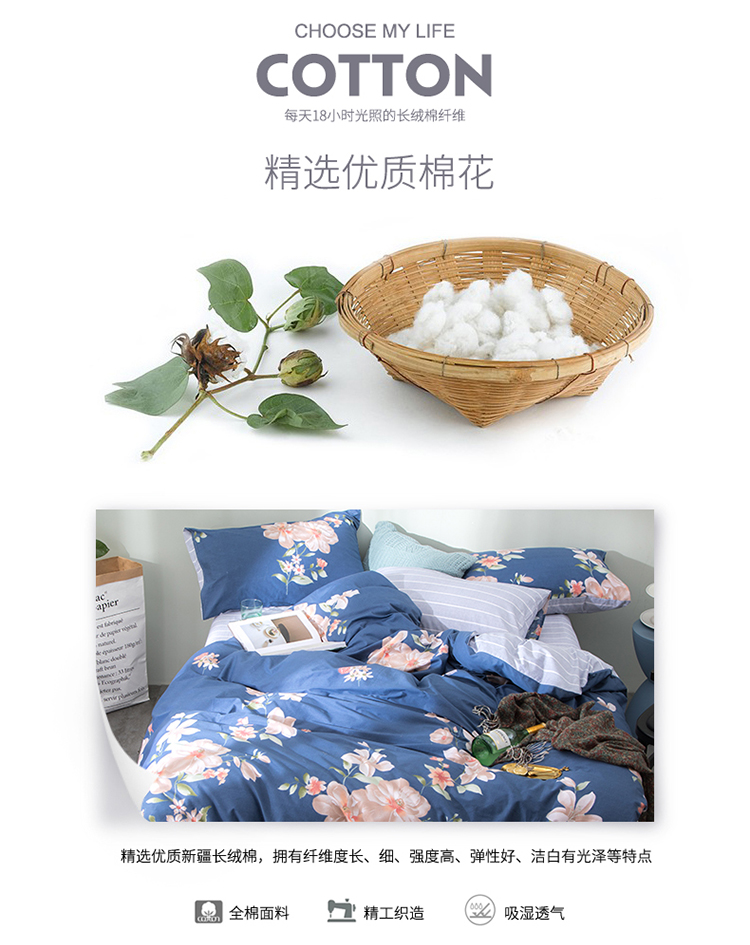 商品名称:芃成家纺 2020全棉133X72圆网四件套 花畔里