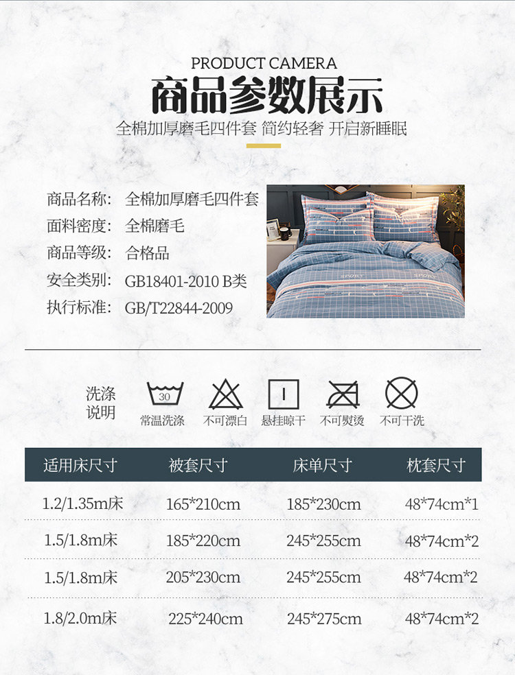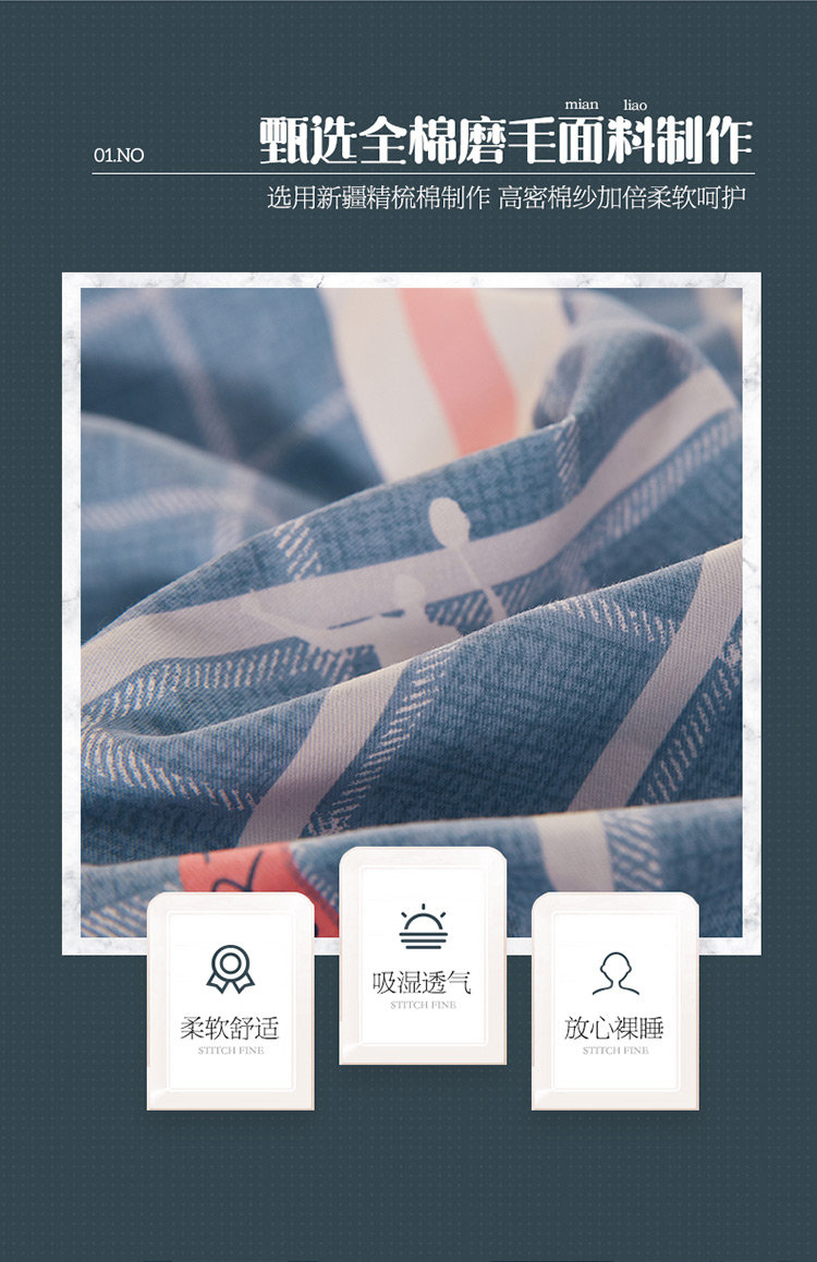 商品名称:雲归梦 2019新款多规格全棉加厚生态磨毛四件套 运动风尚
