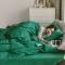蓝巢家纺 2020年春夏新品全棉加厚水洗棉双拼款四件套素墨绿