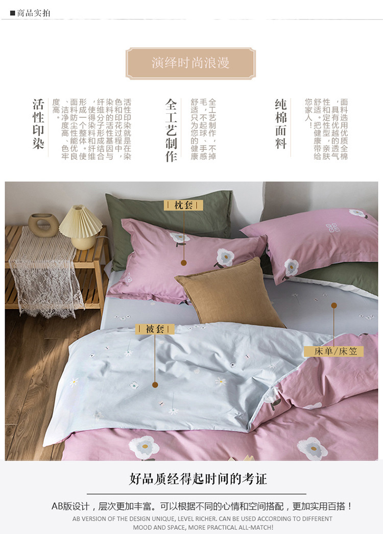 窝米 2020春夏新品全棉13372四件套小波西风系列小花花,小花花
