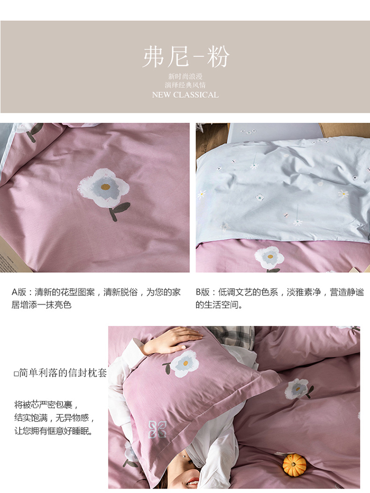 商品名称:窝米 2020春夏新品花卉风系列四件套 弗尼-粉