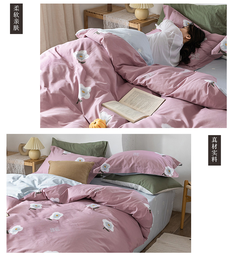 (总)窝米 2022夏季新品素色双拼水洗棉四件套,艾青双拼,冰莓粉双拼,绿云双拼,抹茶绿双拼,少女粉双拼,神仙紫双拼,雾霾蓝双拼,芝士双拼
