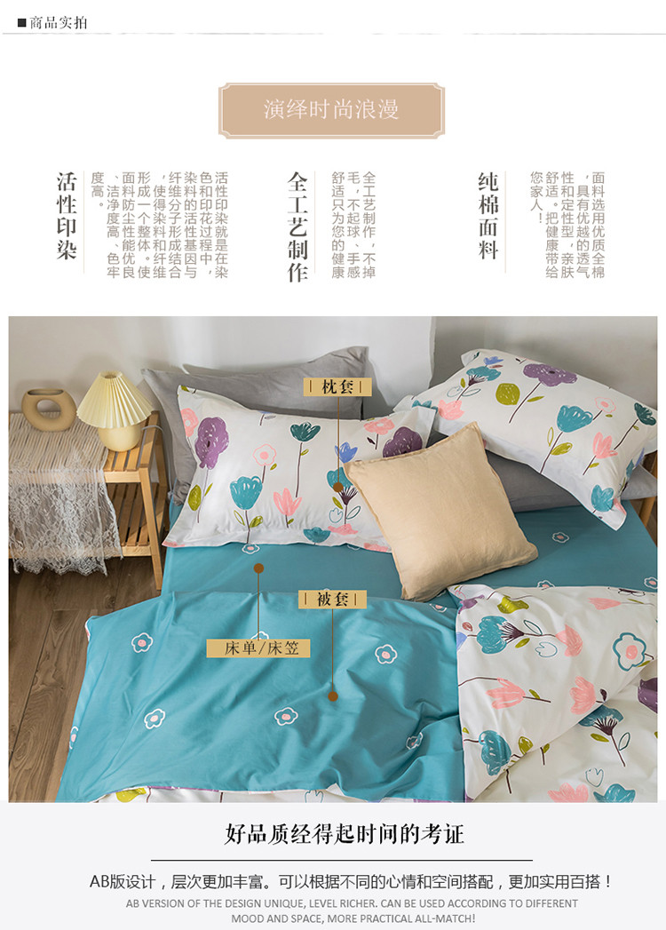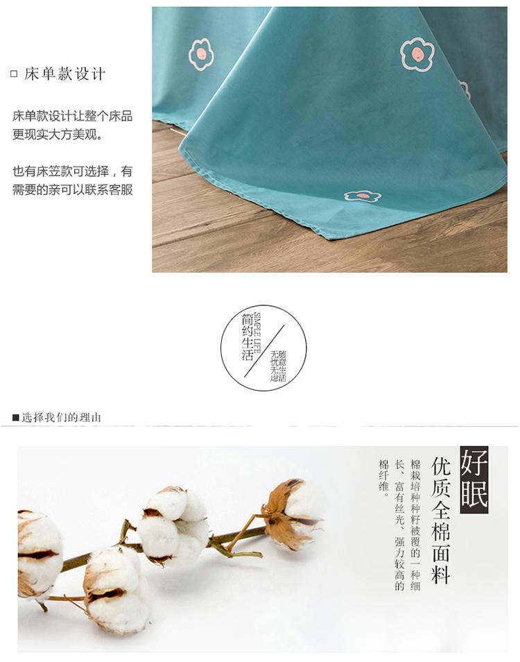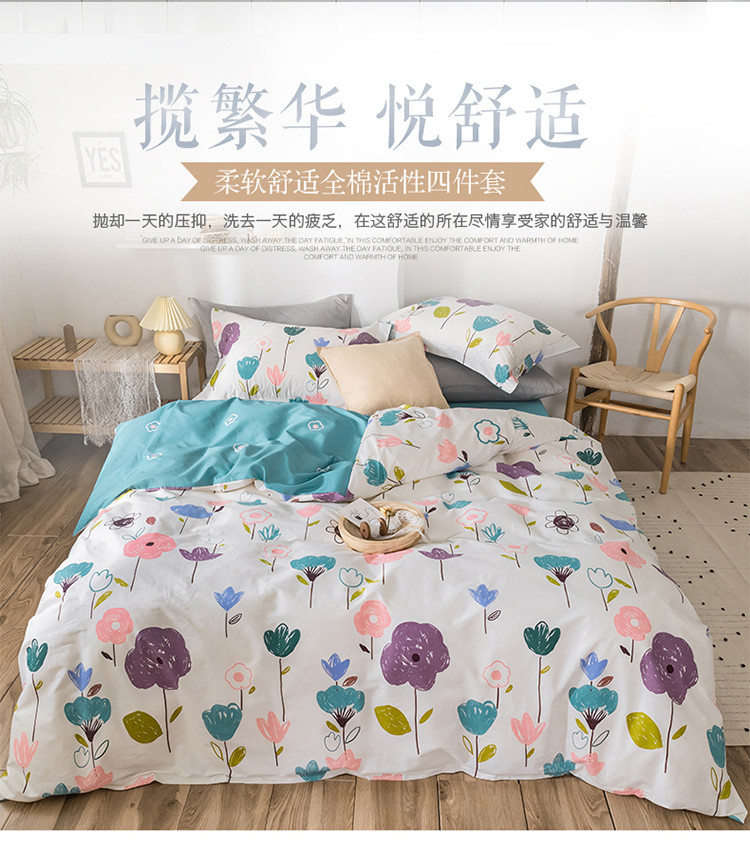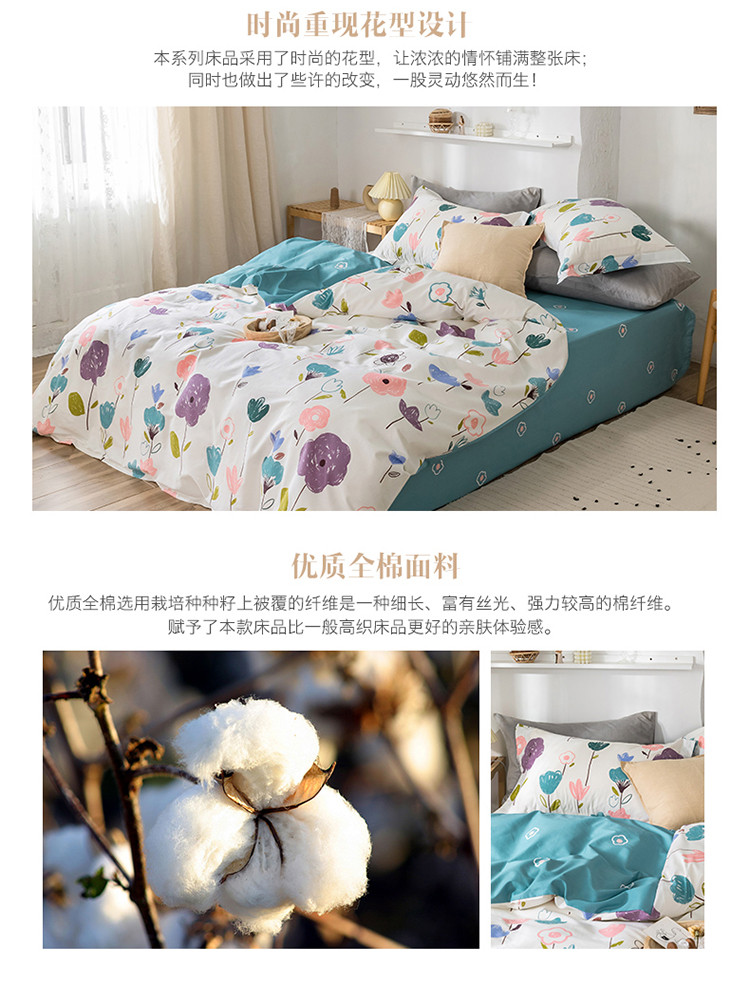 窝米 2020春夏新品全棉13372四件套小波西风系列小花花,小花花