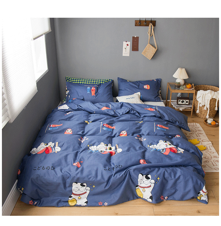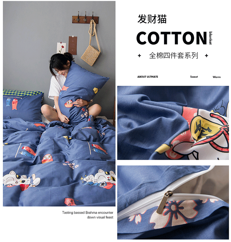 北纬27度 2020春夏新品居家卡通风全棉四件套 发财猫