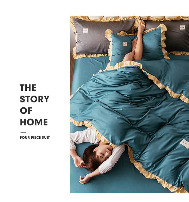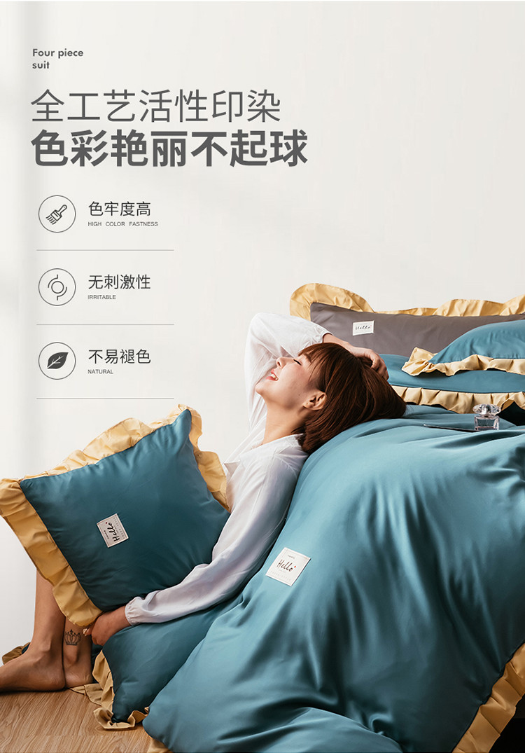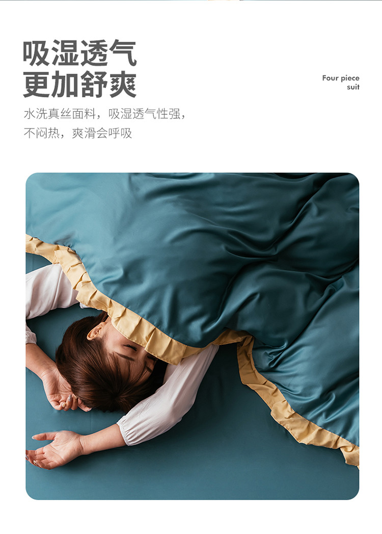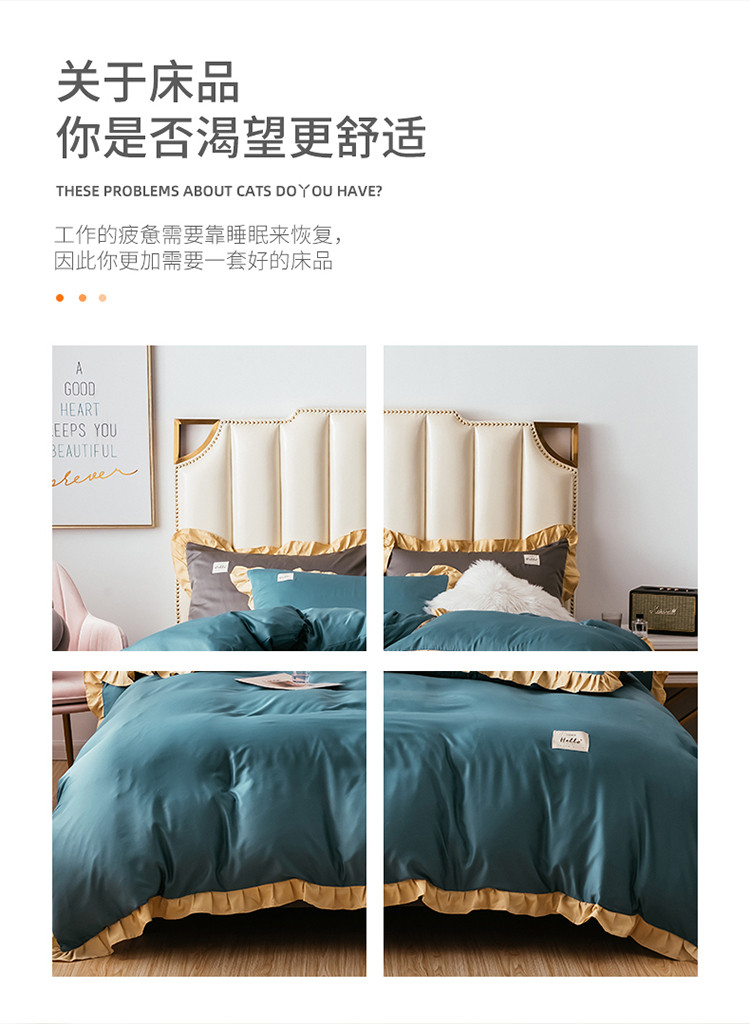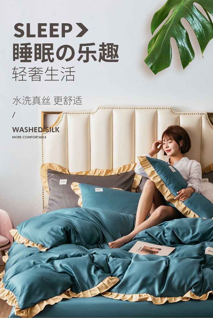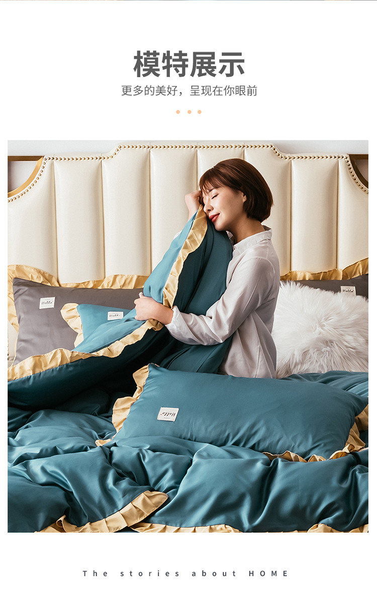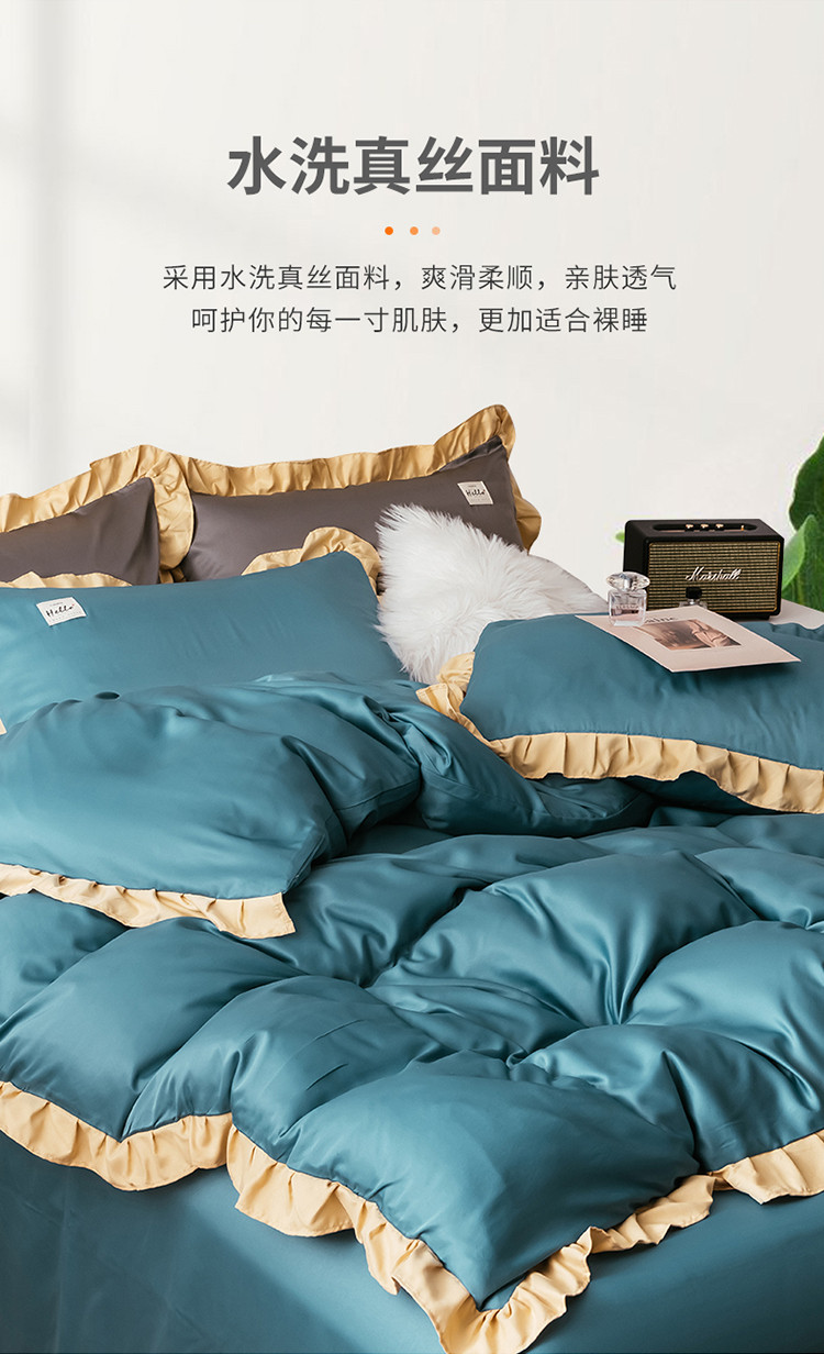 商品名称:芃成 2020新款水洗真丝库里南花边四件套 库里南-宾利蓝
