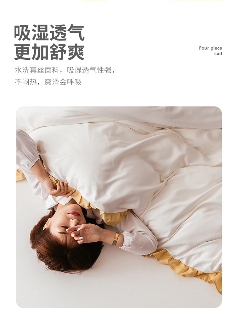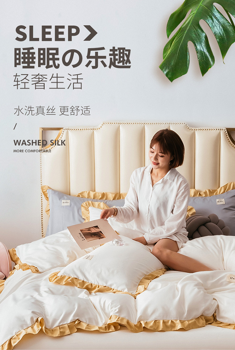 芃成 2020新款水洗真丝库里南花边四件套 库里南-珍珠白