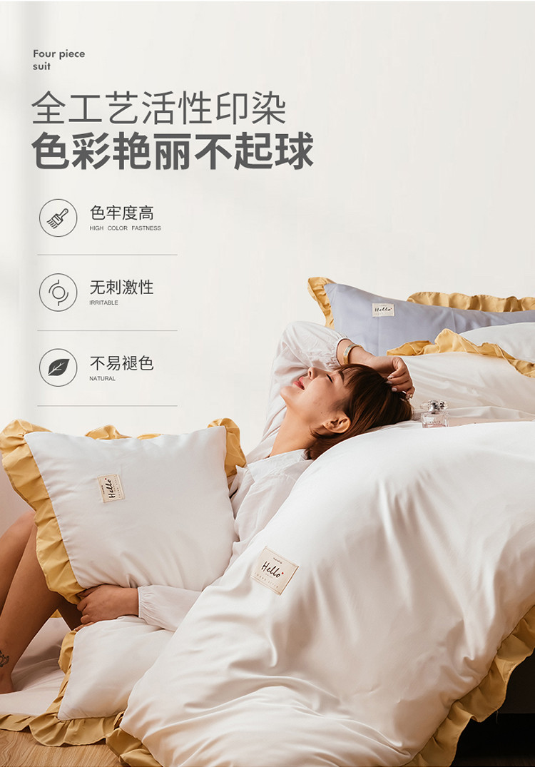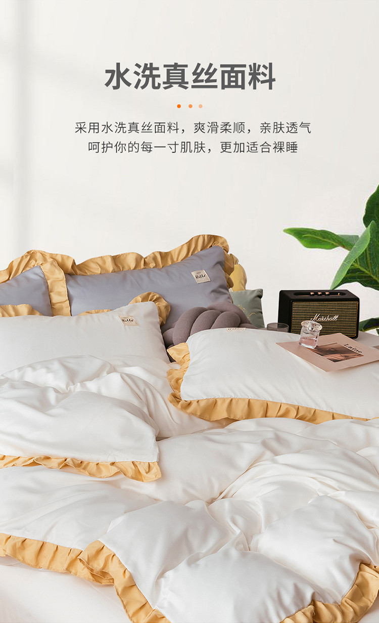 商品名称:芃成 2020新款水洗真丝库里南花边四件套 库里南-珍珠白