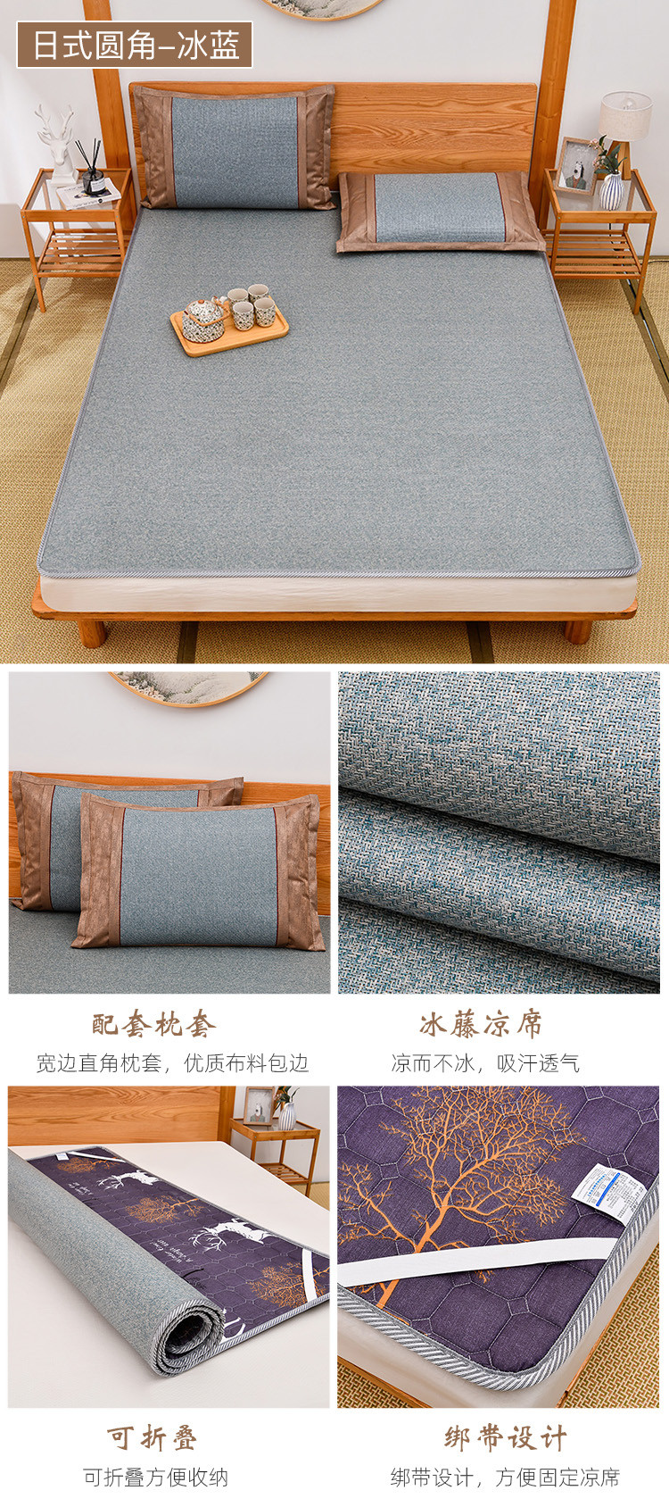 商品名称:总-小牛席业宜家风日式两用冰丝藤席空调凉席三件套榻榻米床垫