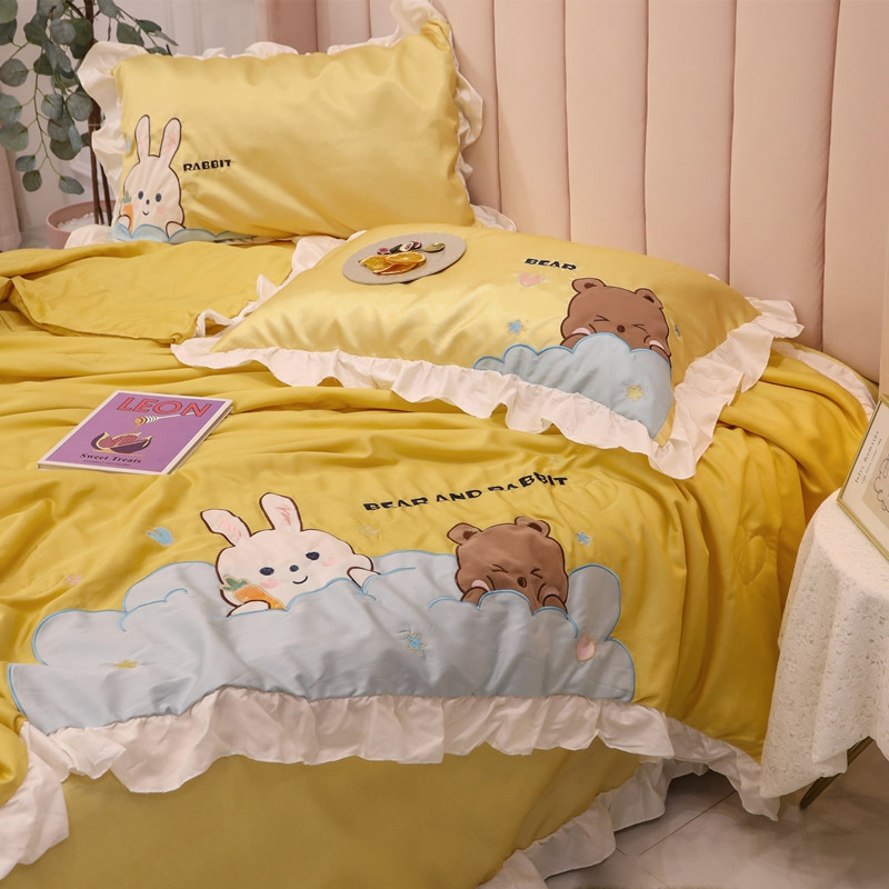 商品名称:星野 2020新款夏被凉席三件套 小兔与小熊的故事黄