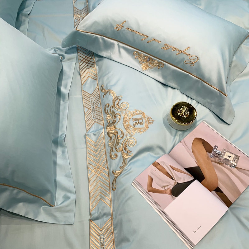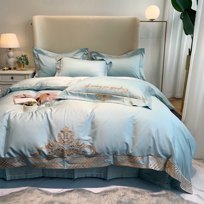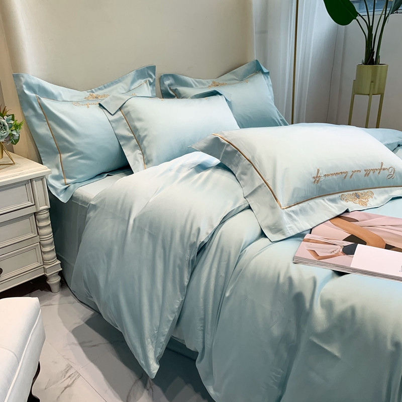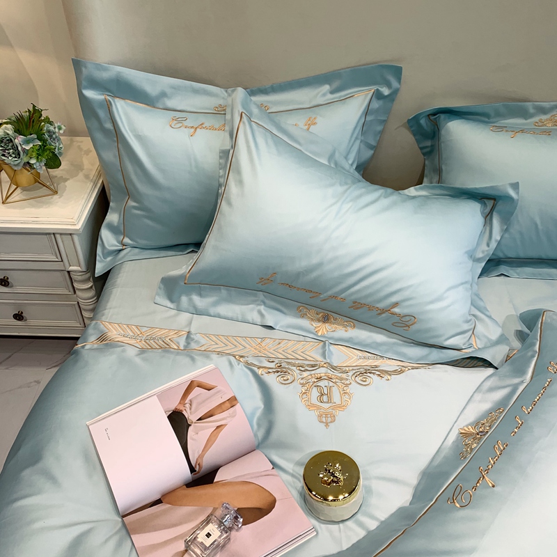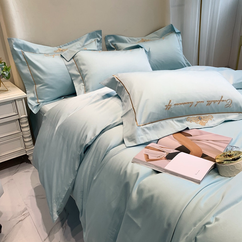馨蕊家居 202160s双股埃及长绒棉维尼亚系列四件套湖水蓝