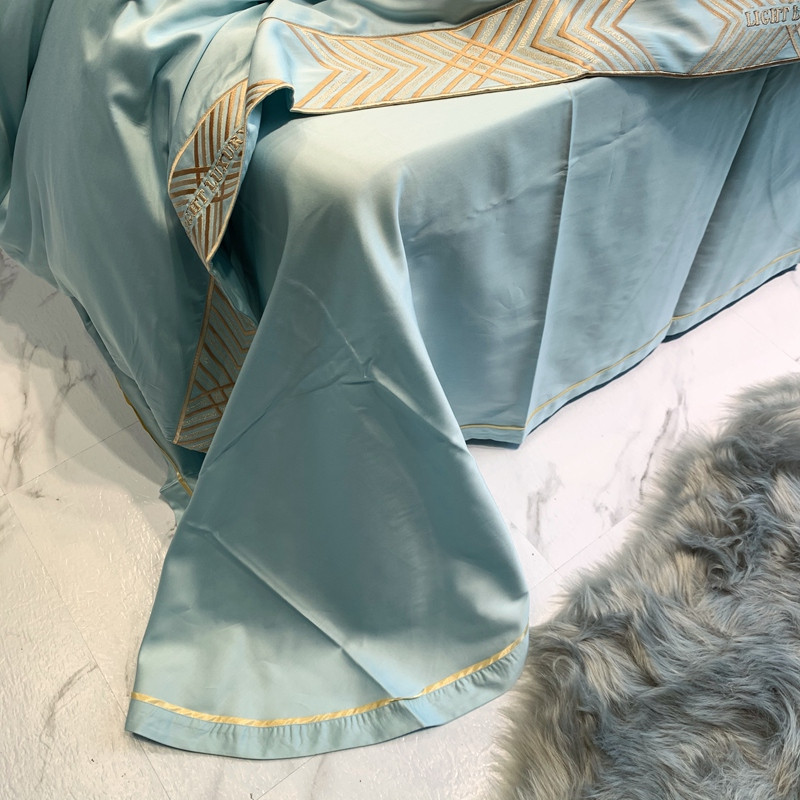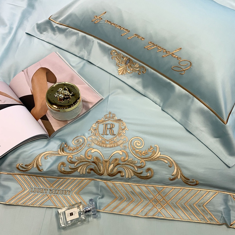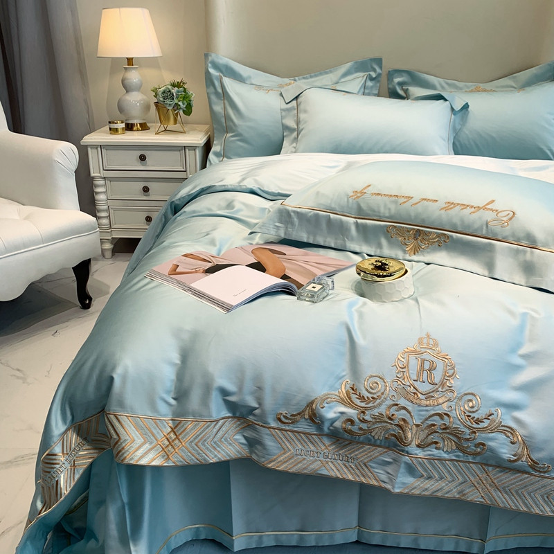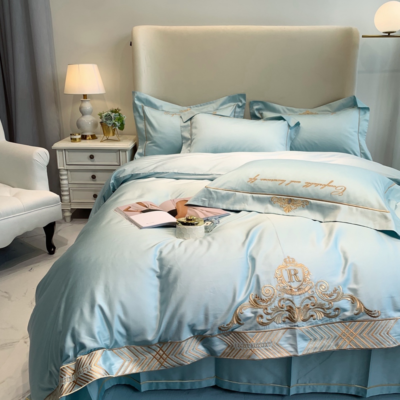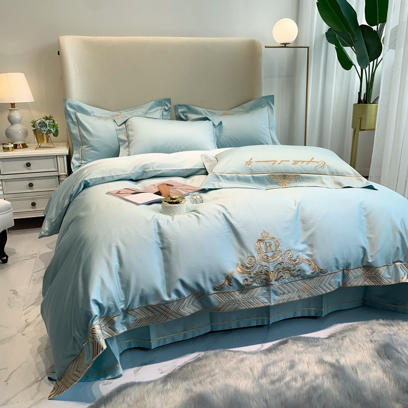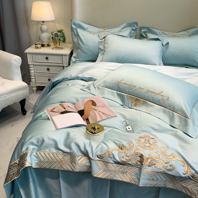 馨蕊家居 202160s双股埃及长绒棉维尼亚系列四件套湖水蓝