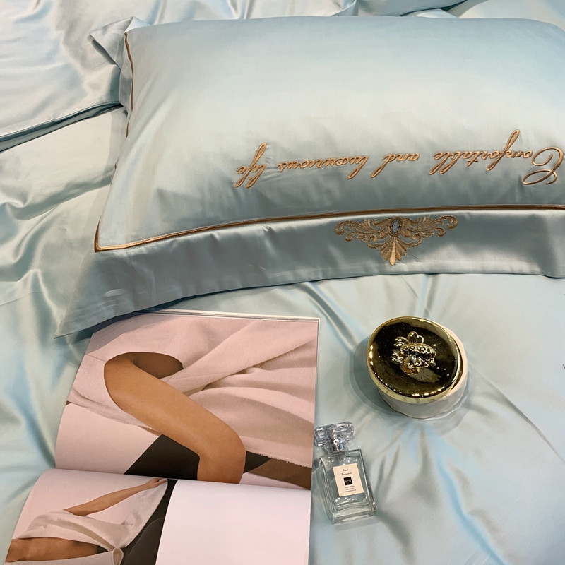 商品名称:馨蕊家居 202160s双股埃及长绒棉维尼亚系列四件套湖水蓝