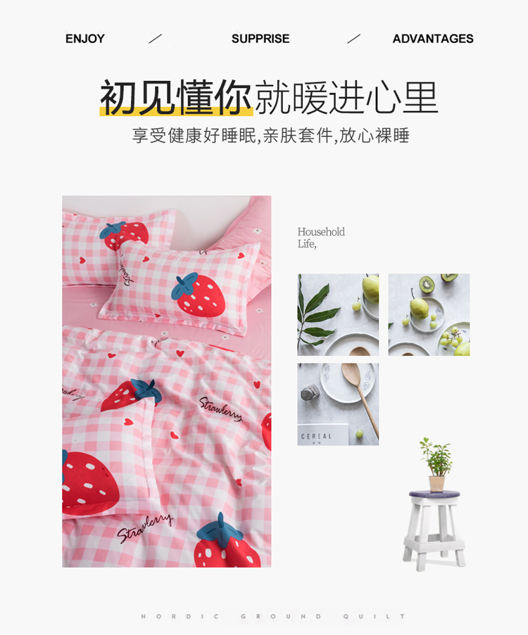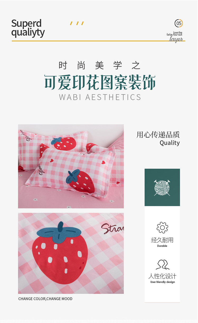 商品名称:米粒 2021新款芦荟棉套件 草莓格
