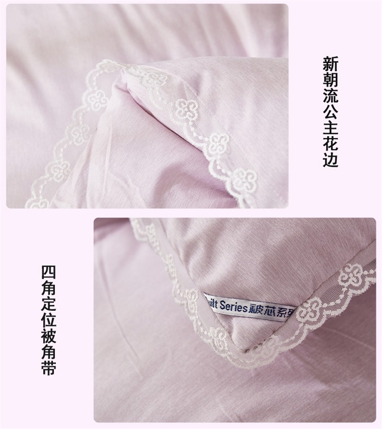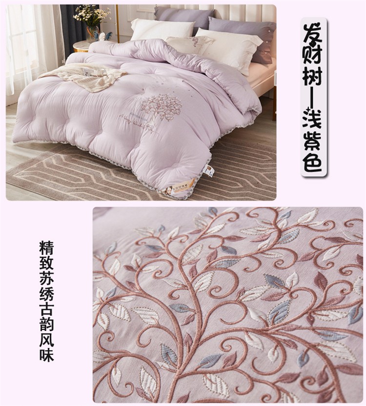 • 91家纺网 家纺一手货源 找家纺 啊雅家居2025新款肌理纹绣花花边羽丝绒被发财树浅紫色
