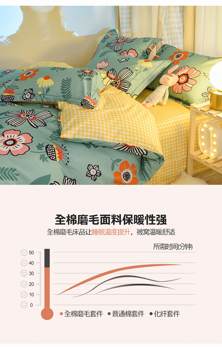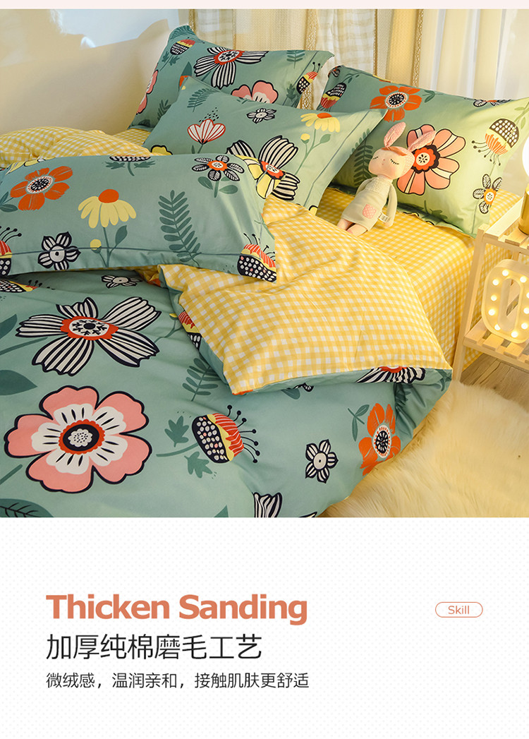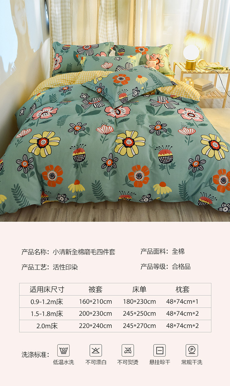 商品名称:雲归梦 2020新款小清新全棉生态磨毛四件套 梵高之花-绿