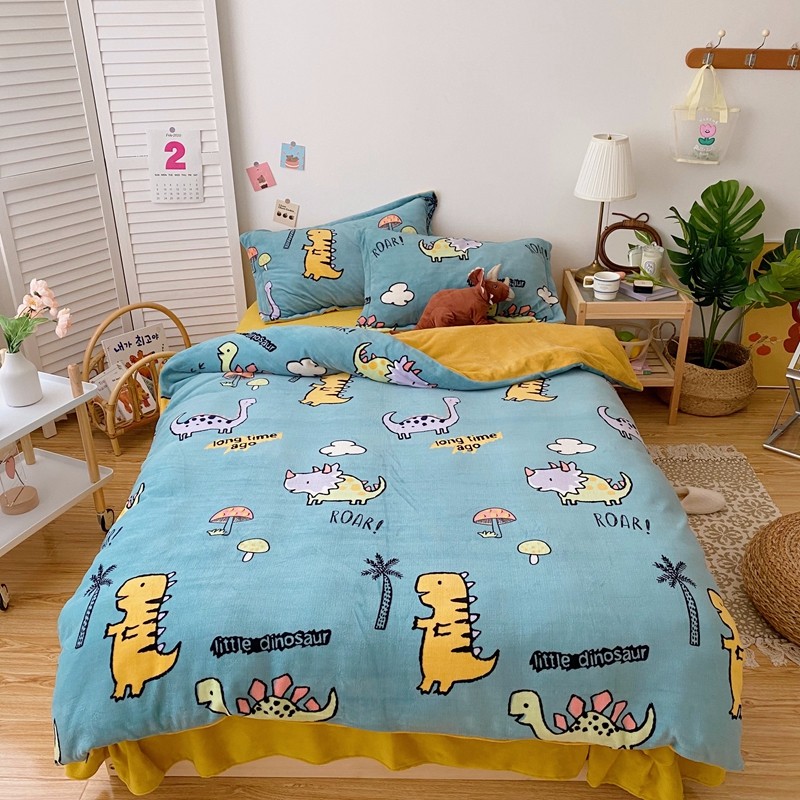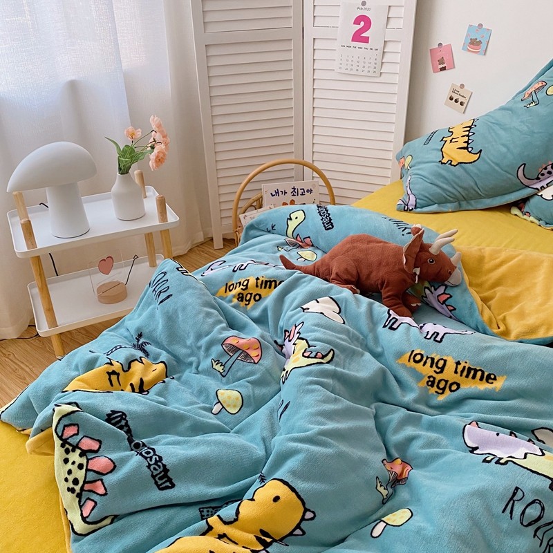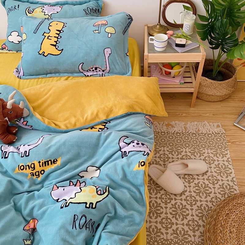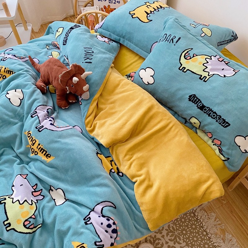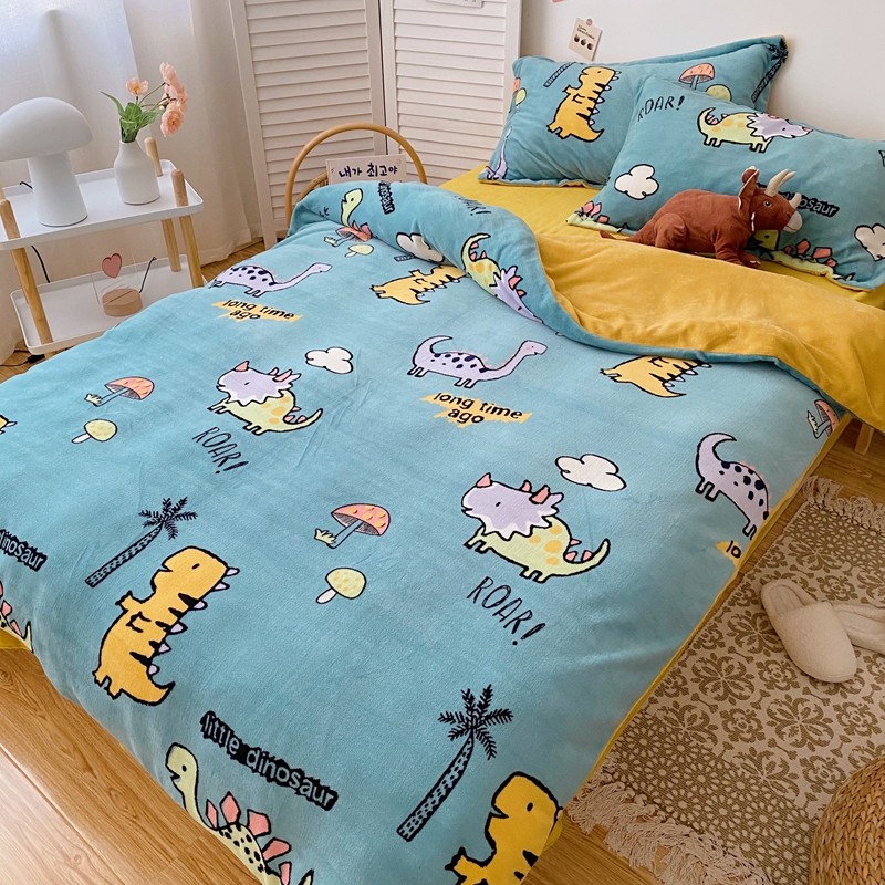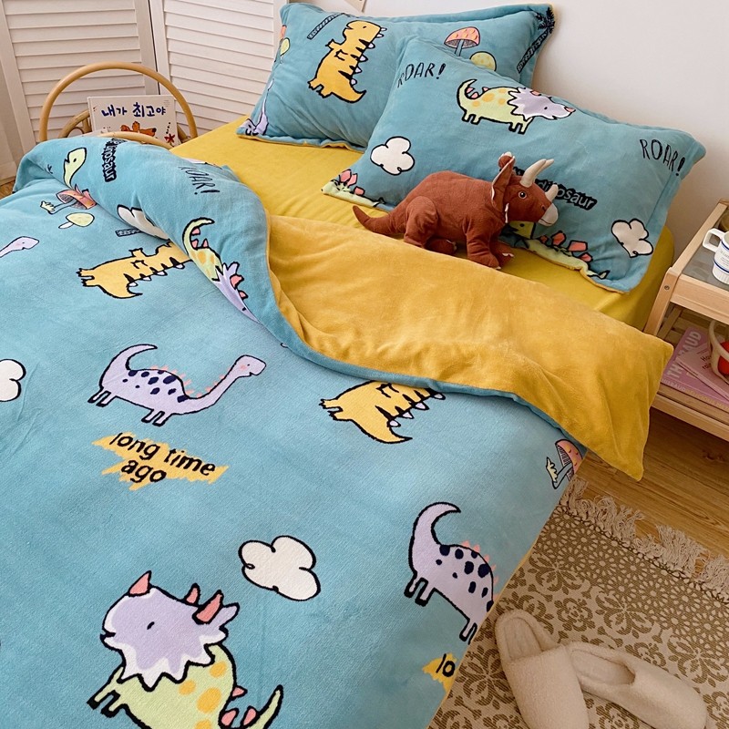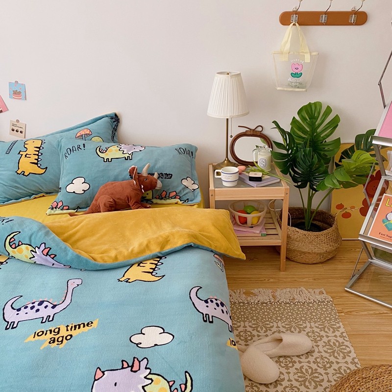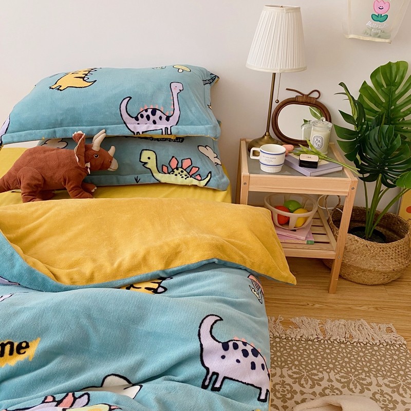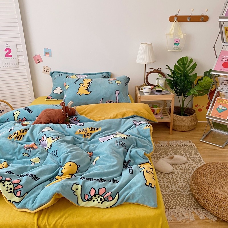 星期八 2020新款秋冬加厚保暖牛奶绒四件套 小恐龙