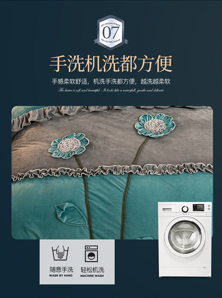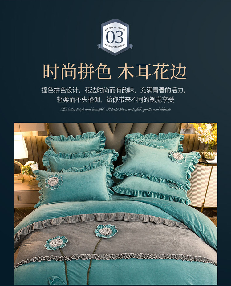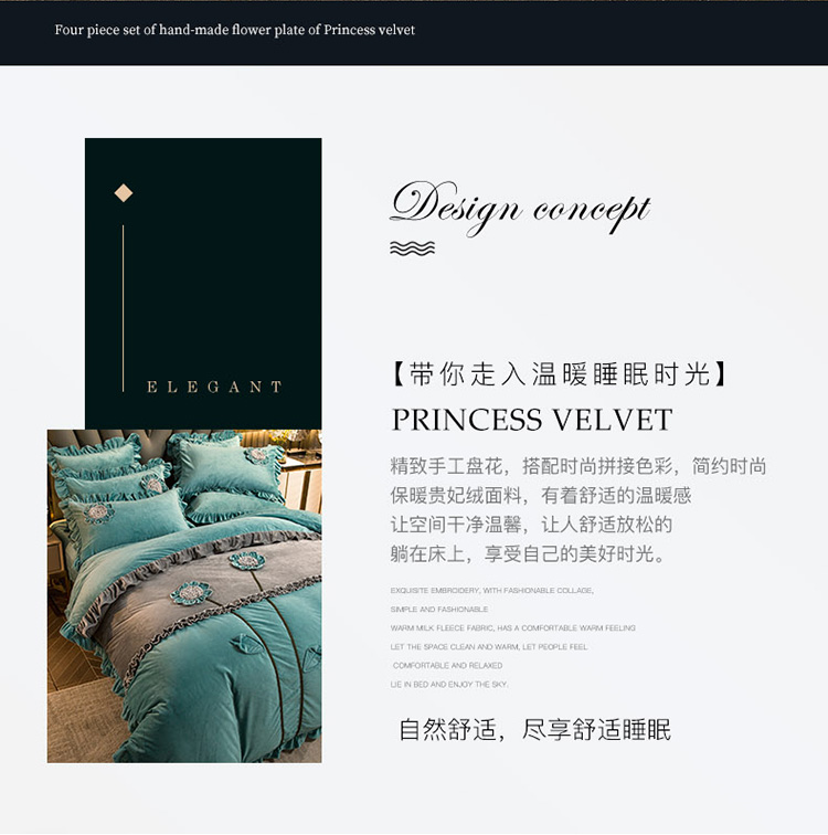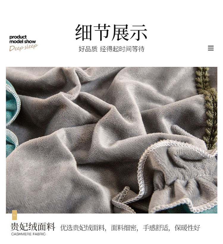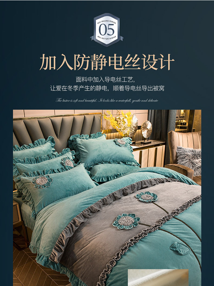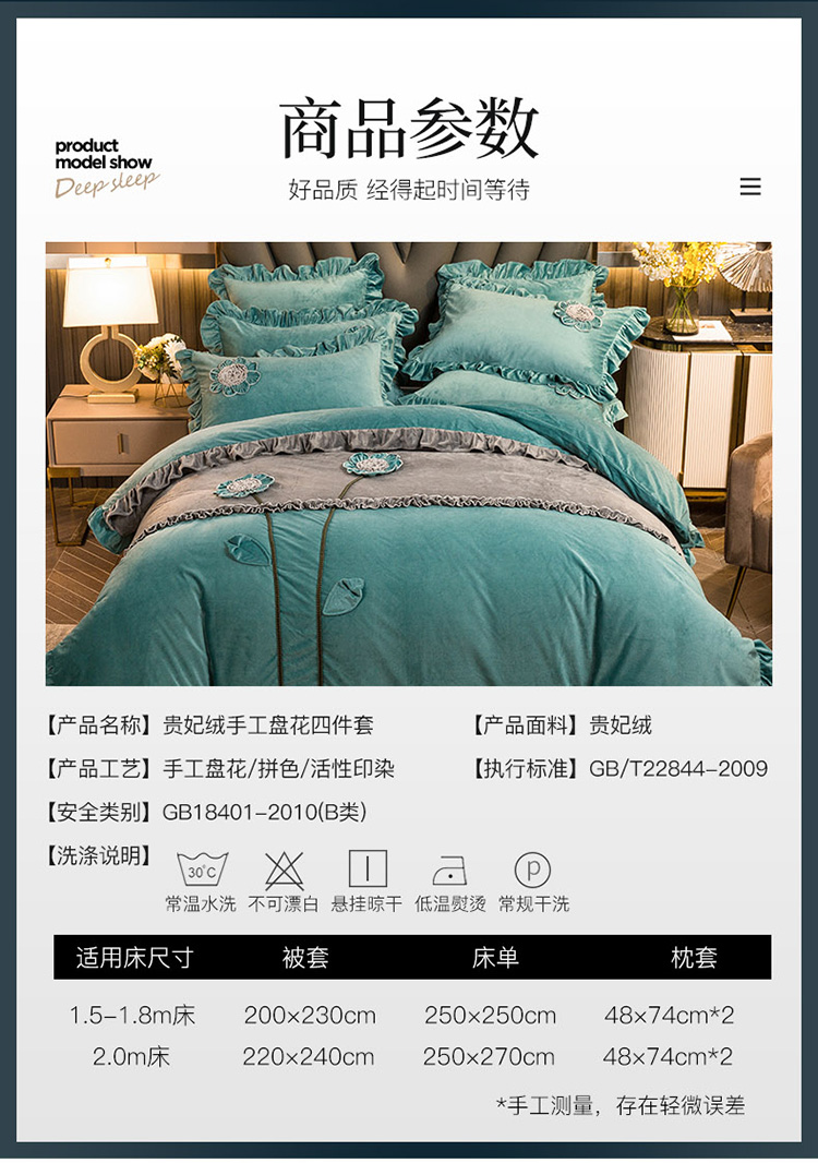 商品名称:兴美佳 新款贵妃绒手工盘花四件套 花颜-宝绿色
