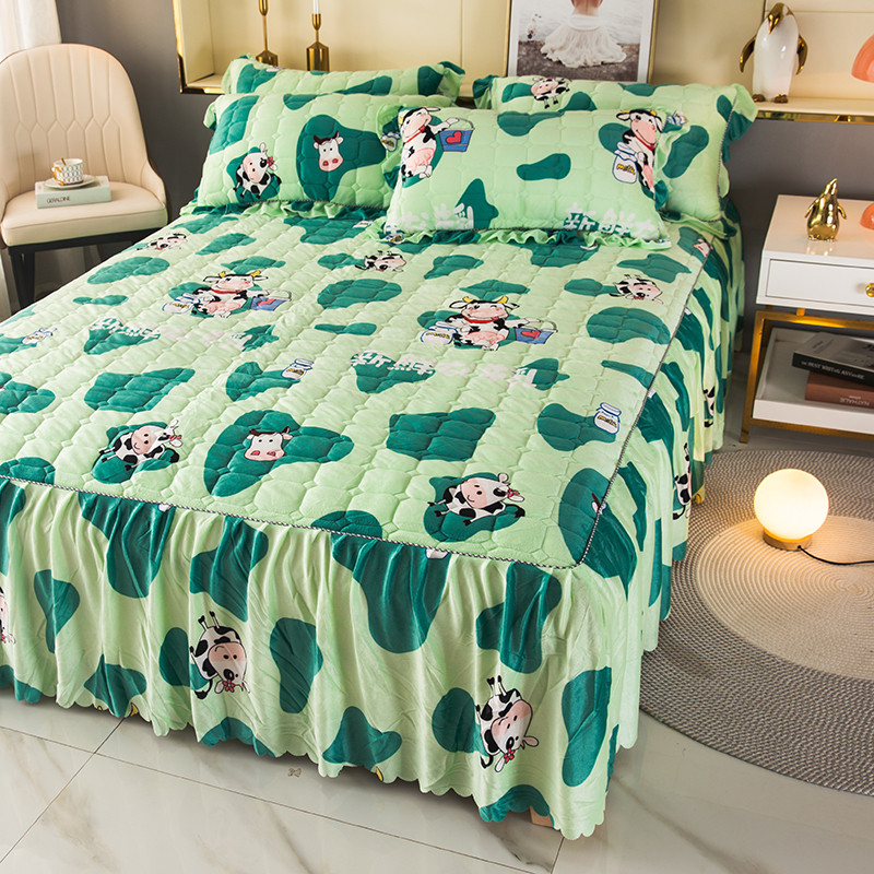 纽缦 2020新款绒夹棉床裙 奶牛块