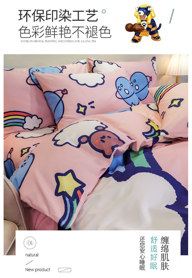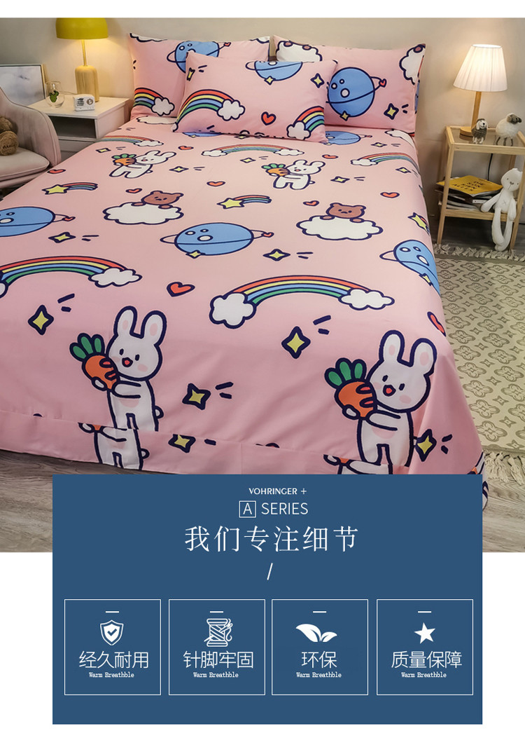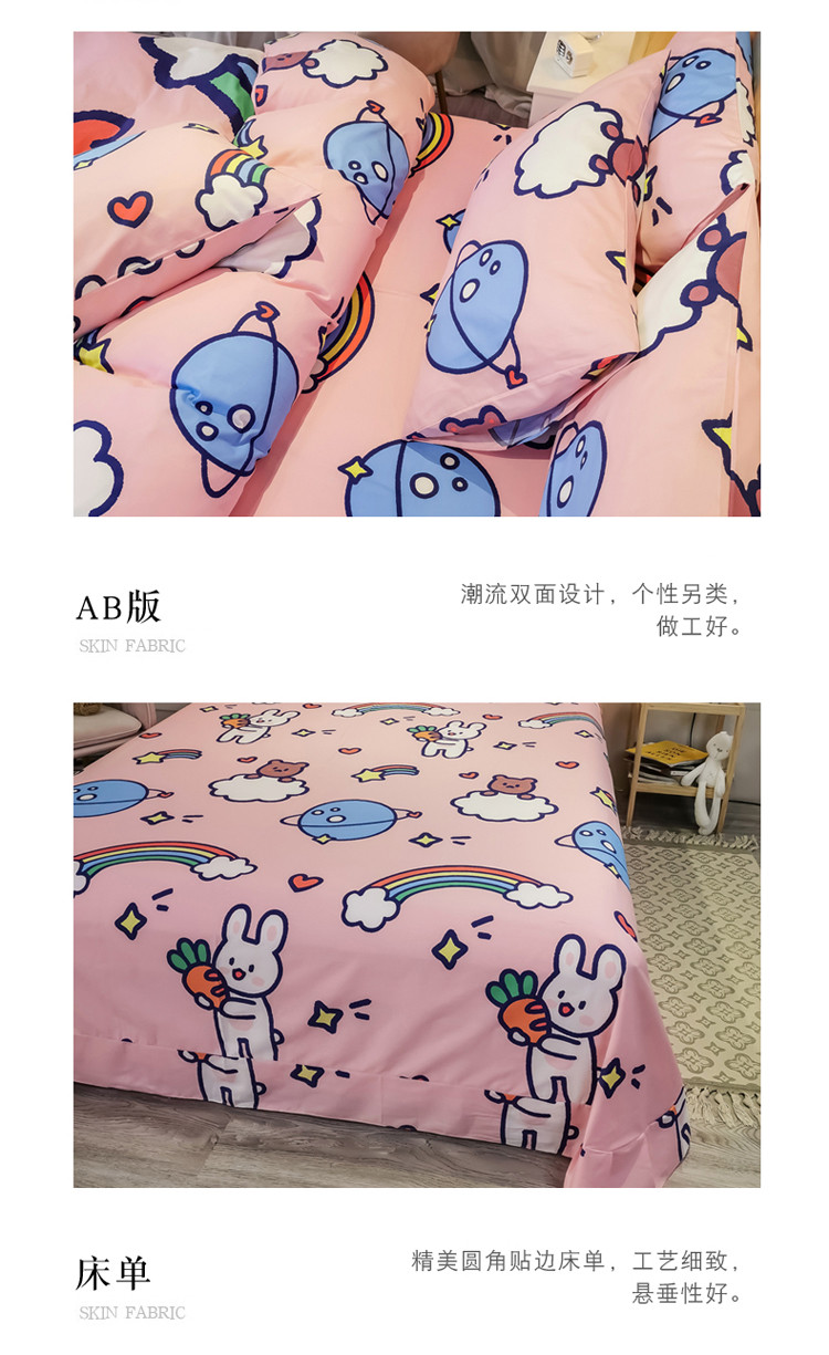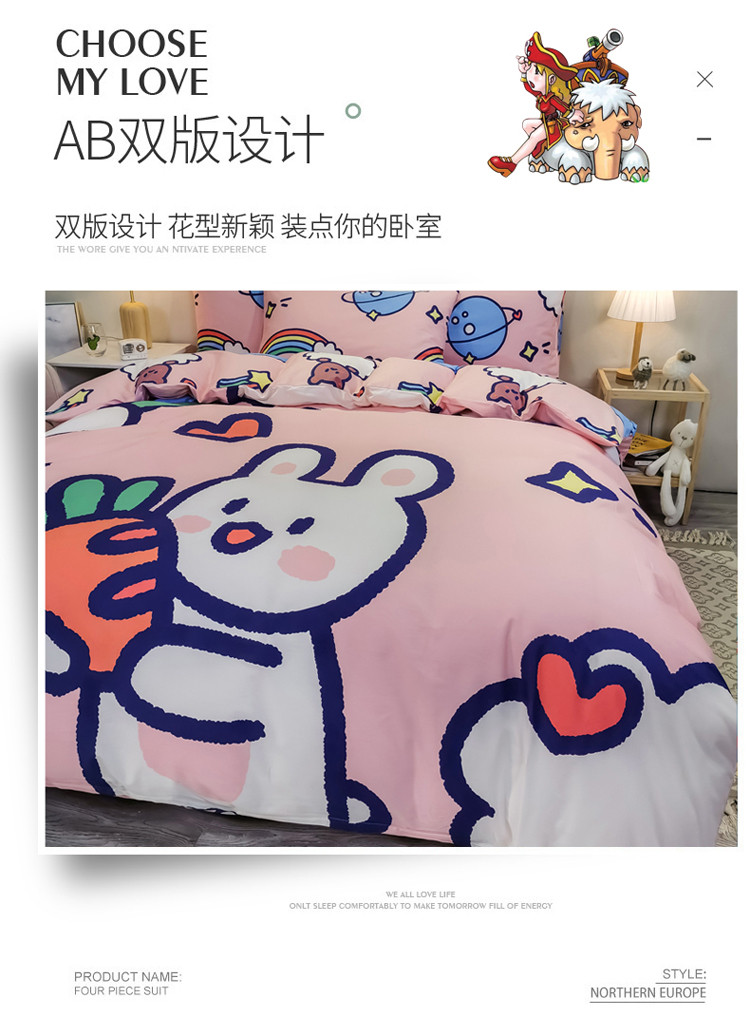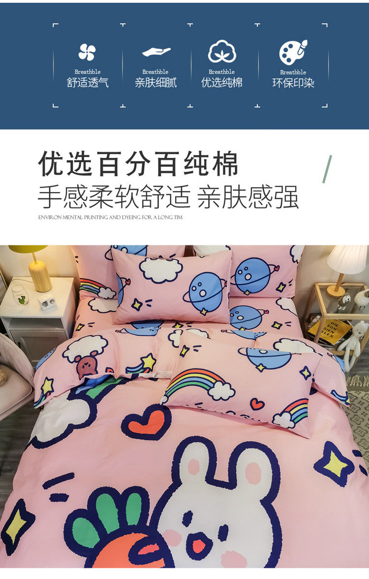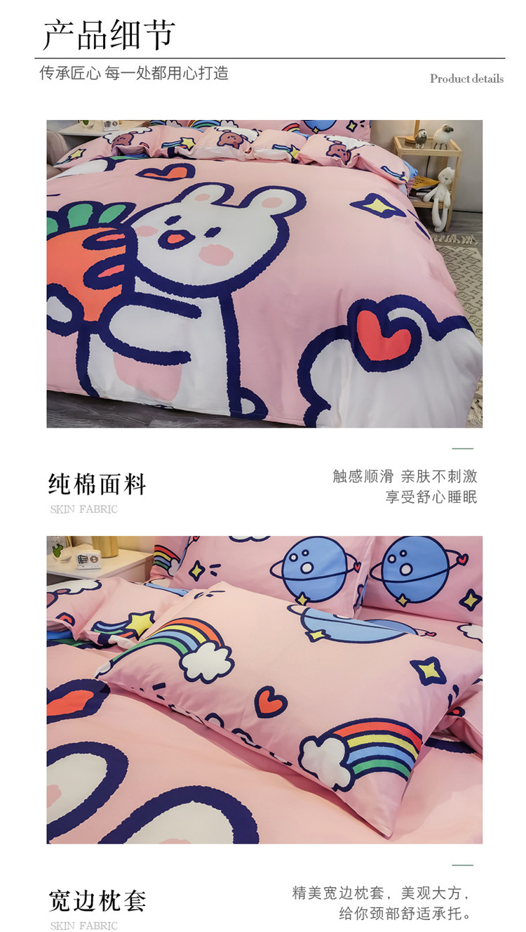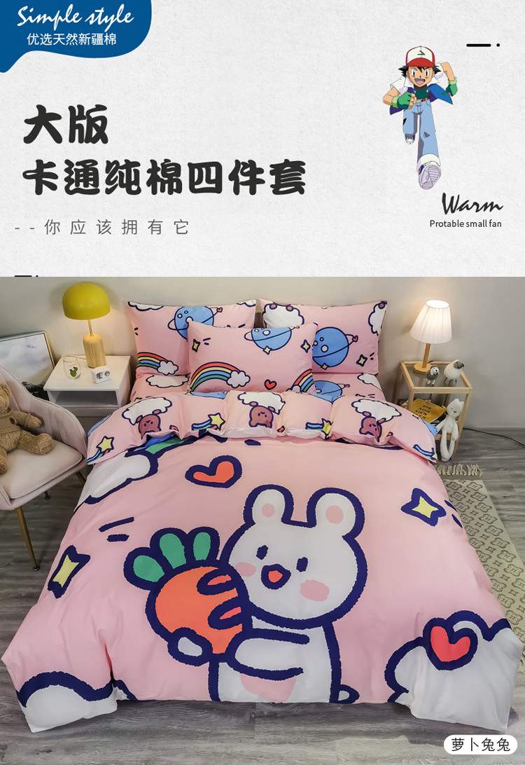 金爱家 2021新款13372大版全棉卡通四件套 萝卜兔兔