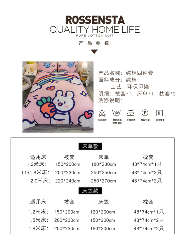 商品名称:金爱家 2021新款13372大版全棉卡通四件套 萝卜兔兔
