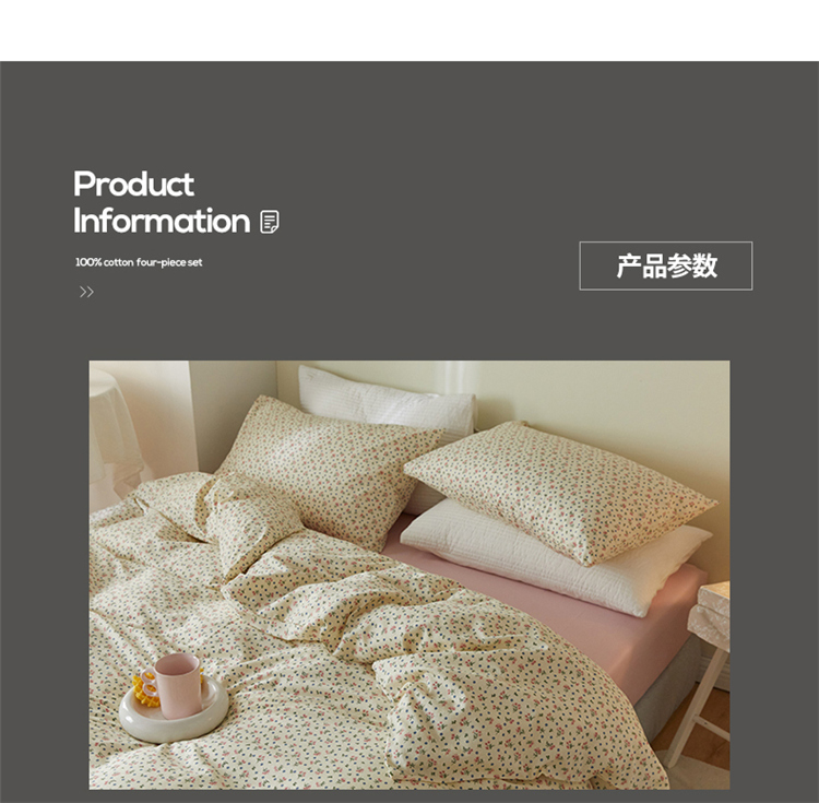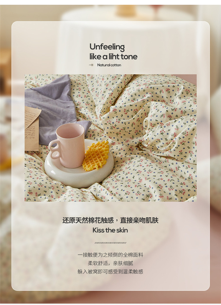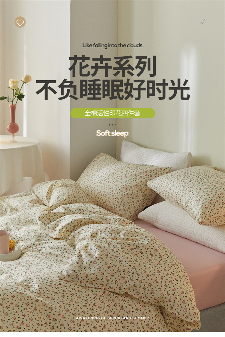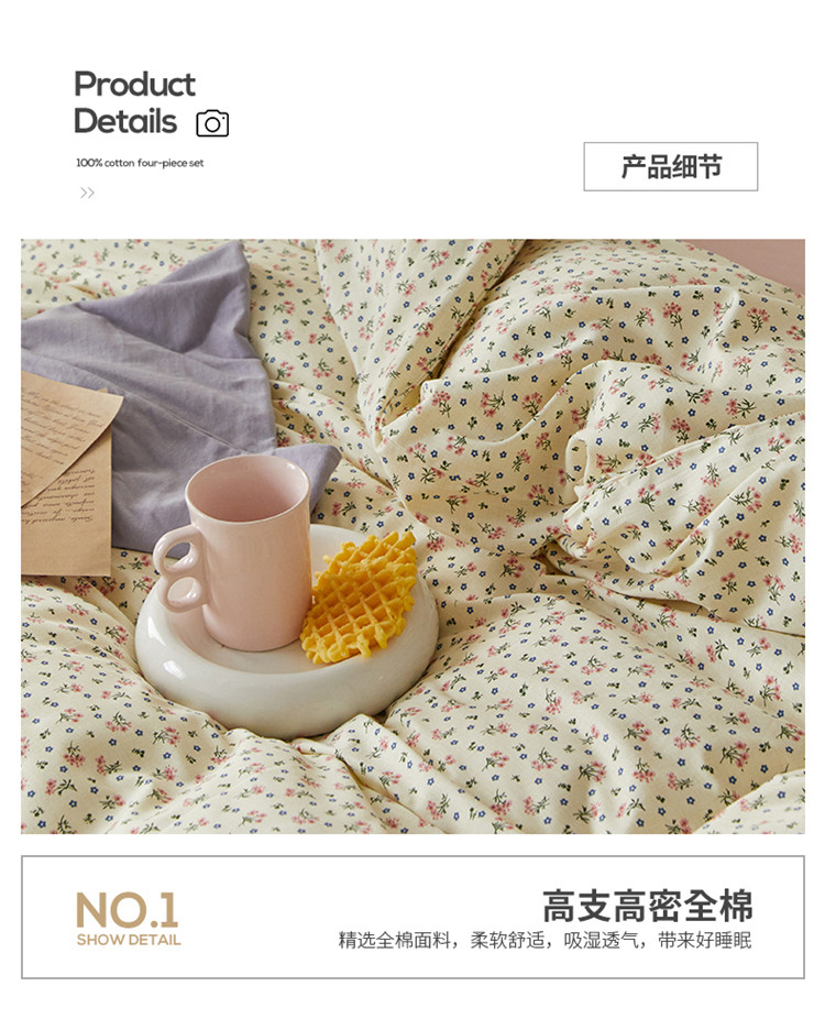 窝米 2020春夏新品全棉13372四件套小波西风系列小花花,小花花
