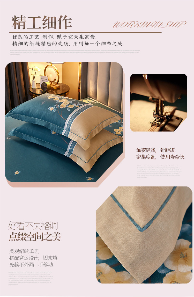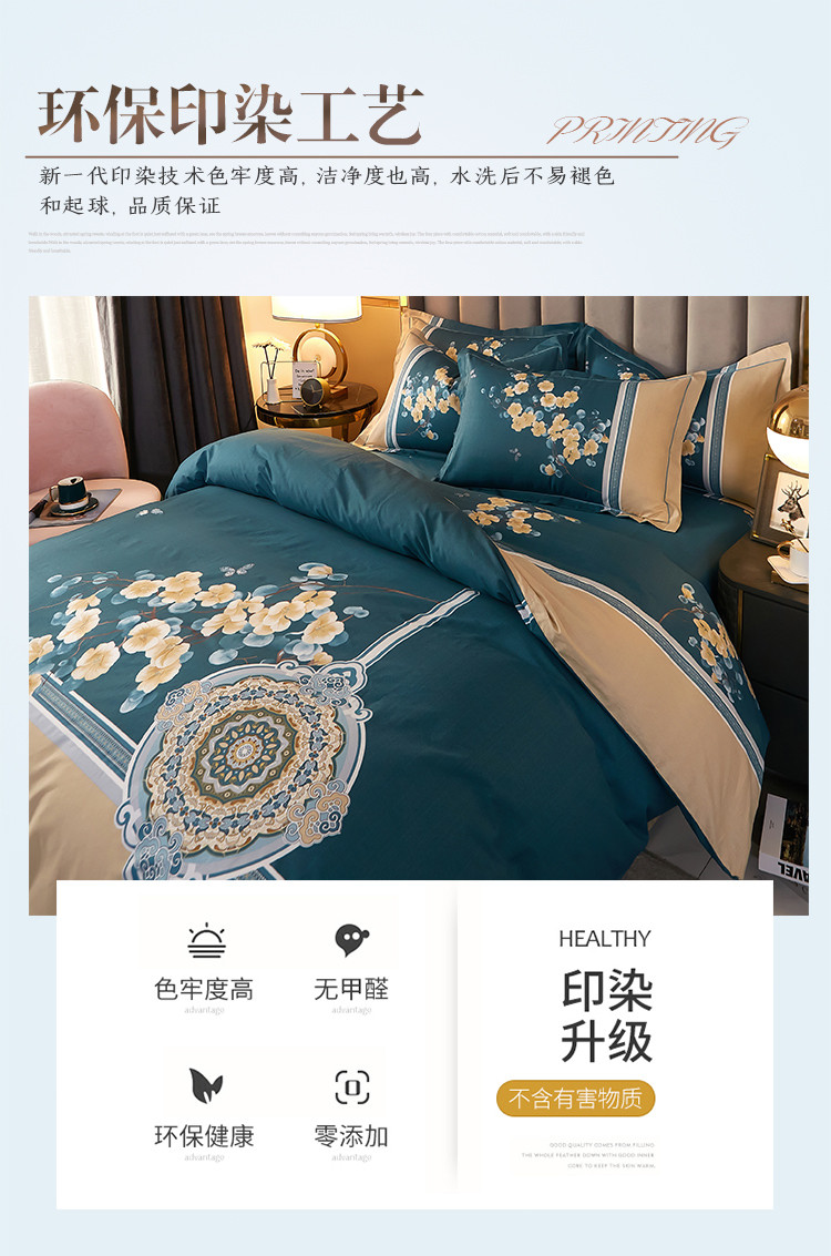 商品名称:雲归梦2021全棉大版四件套第二批花卉格调系列 倾魅绿