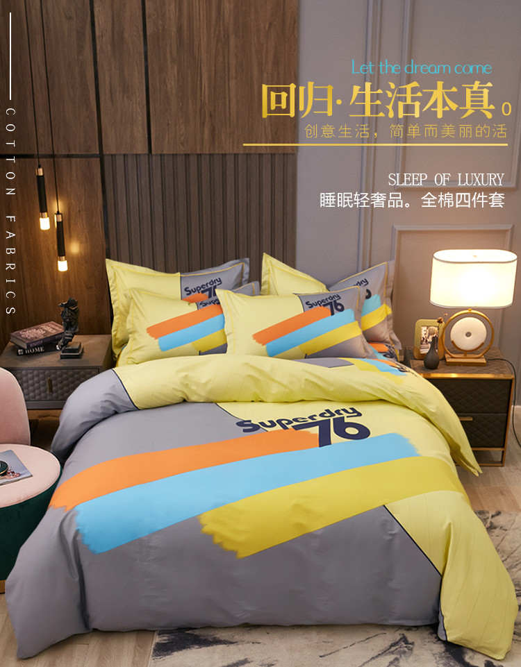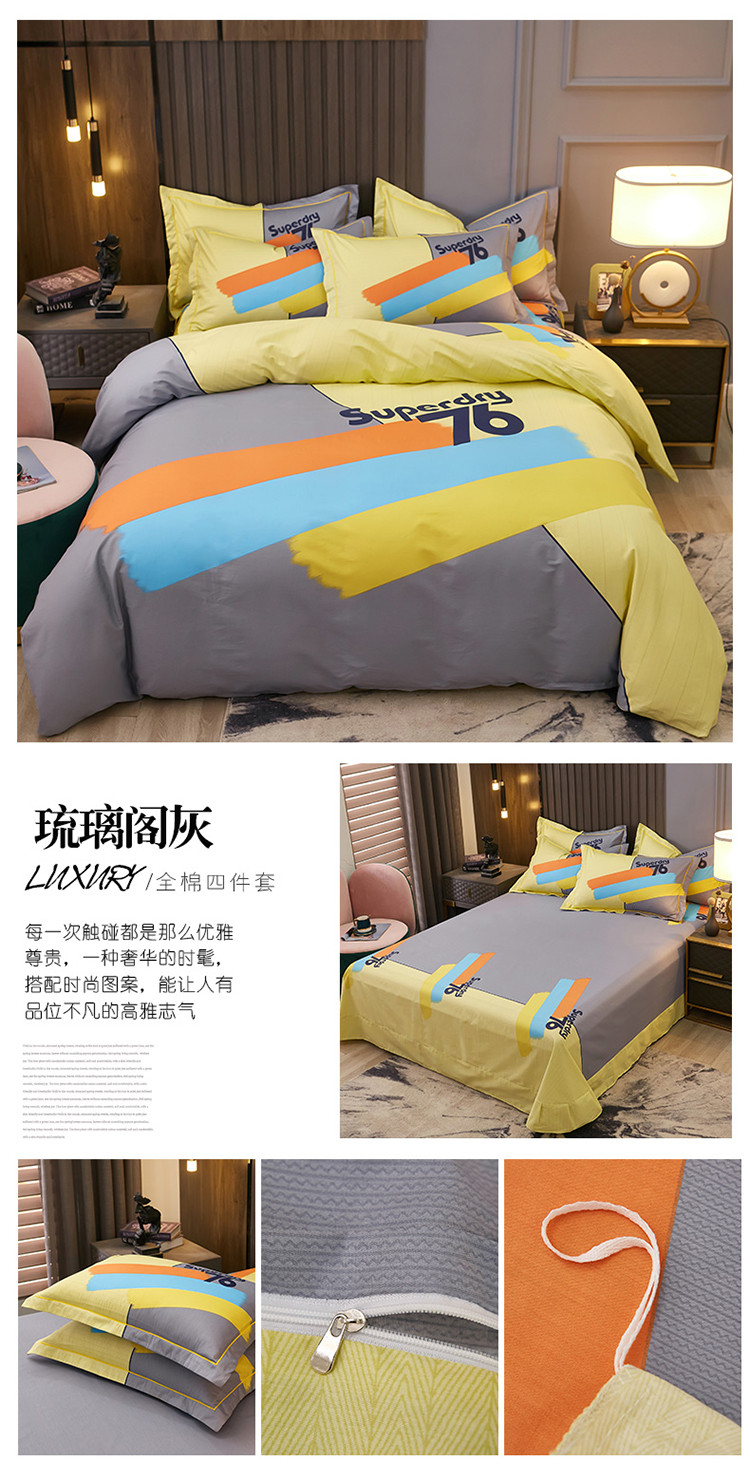 (总)雲归梦2022年新款加厚全棉大版四件套第二批-格条卡通,艾洛依-咖,巴特罗-粉,潮酷熊-咖,幻城-黄,几何空间-灰,杰罗-桔,卡尔玛-黄,兰卡斯-兰,茉伯妮-兰,莫妮卡-粉,趣萌熊-黄,森旅小鹿,天空之城,甜丫丫-桔,潮酷熊蓝