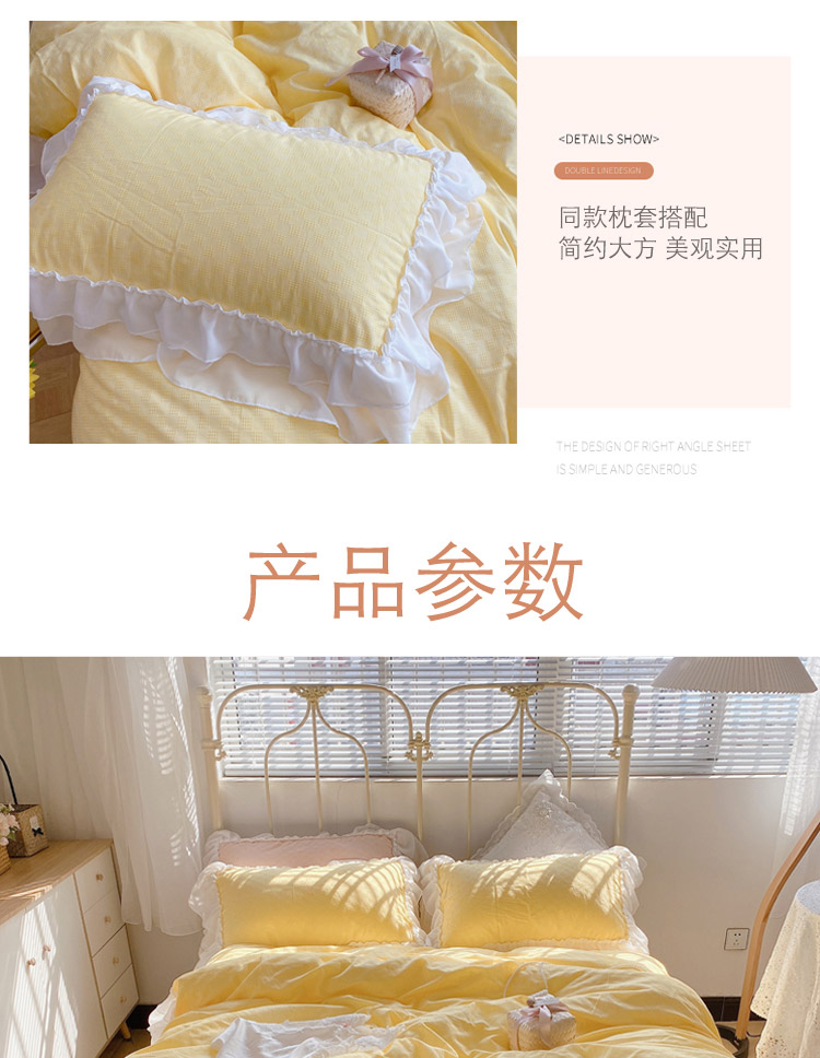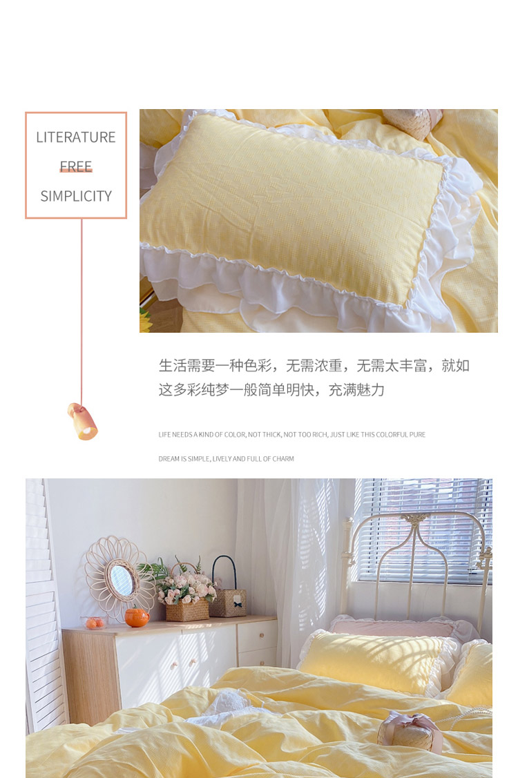 商品名称:玛奇朵 2021新款雪纺纱全棉色织提花四件套 华夫格-黄