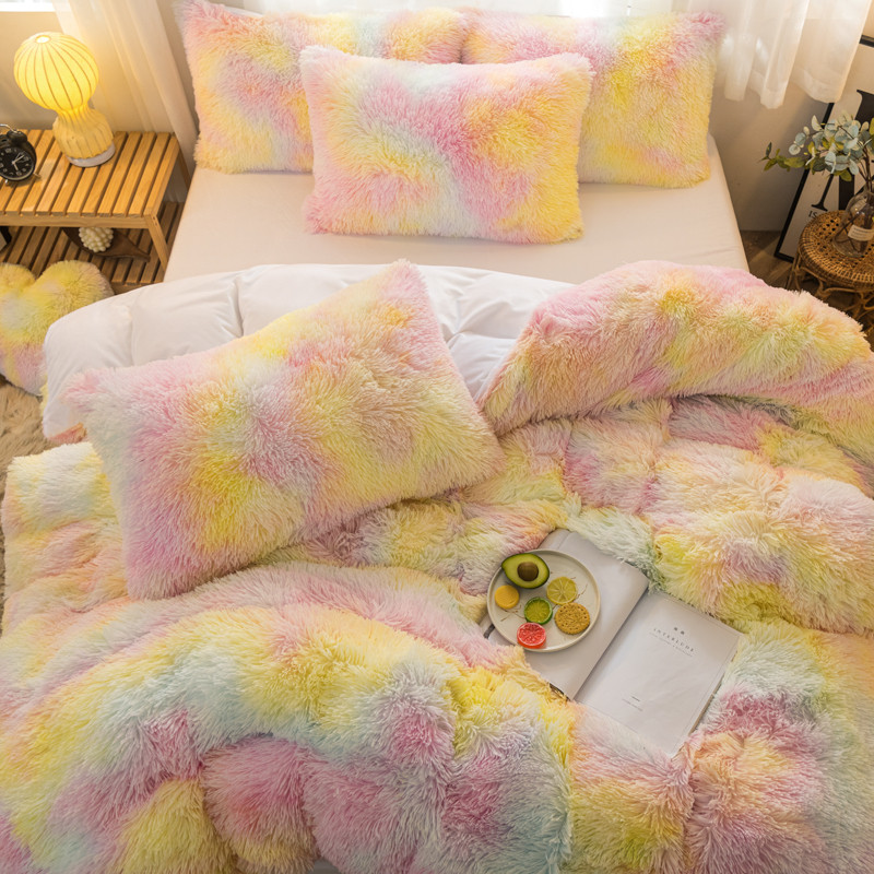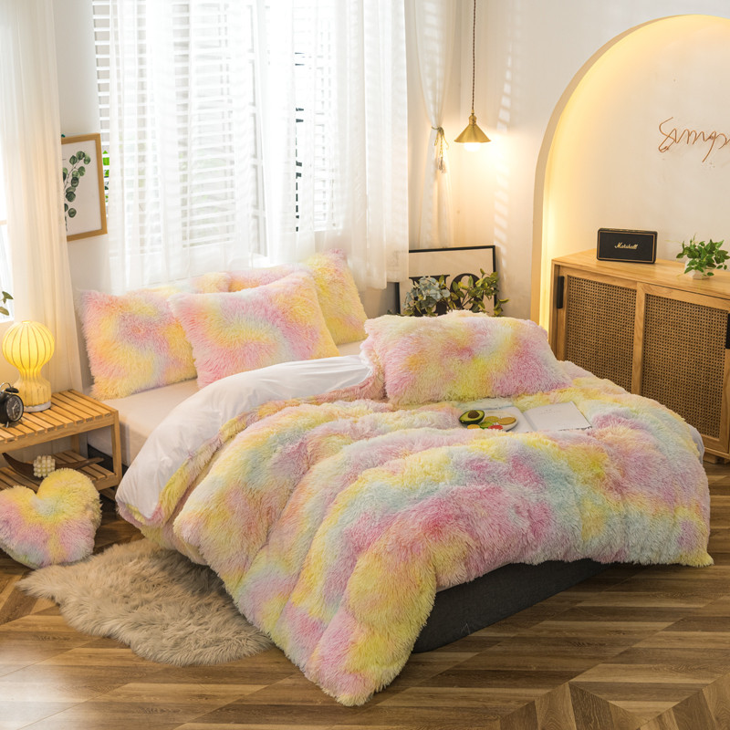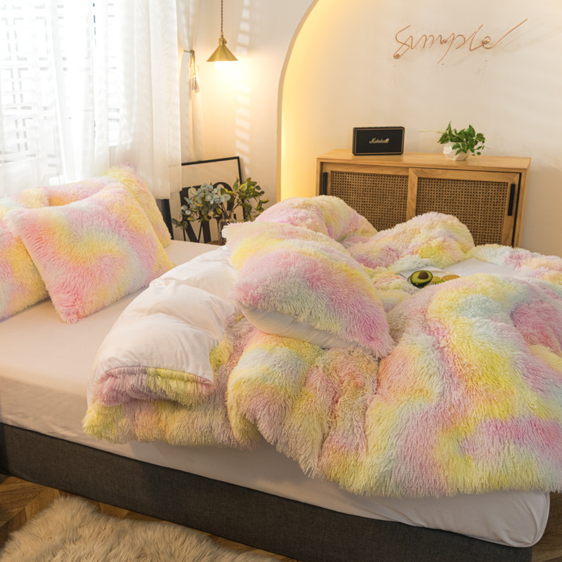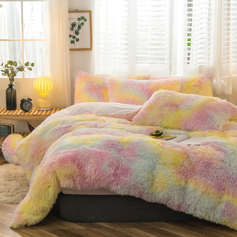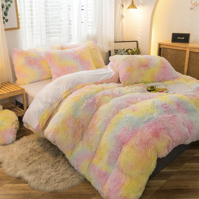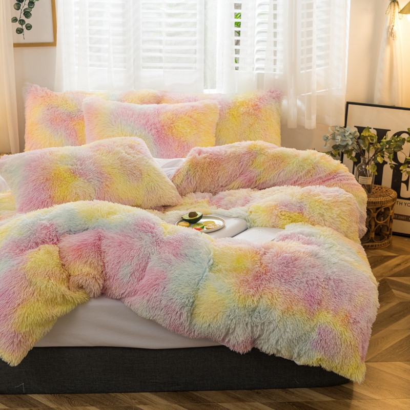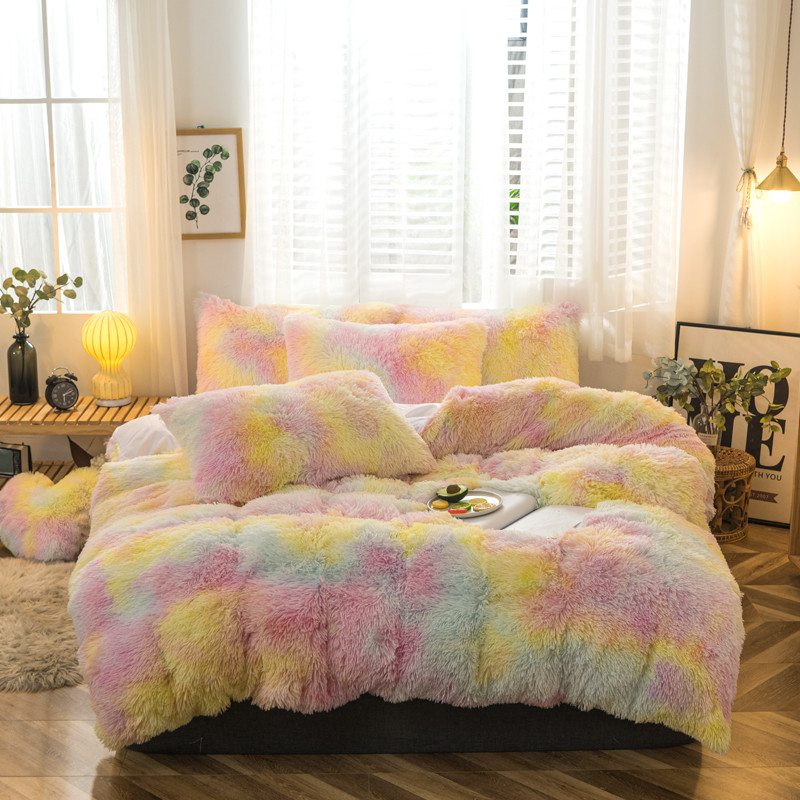 (总)邦妮家纺2024新款直播爆款兔兔绒兔毛绒渐变色彩色牛奶绒四件套,七彩粉,七彩灰,七彩咖,七彩绿,七彩紫