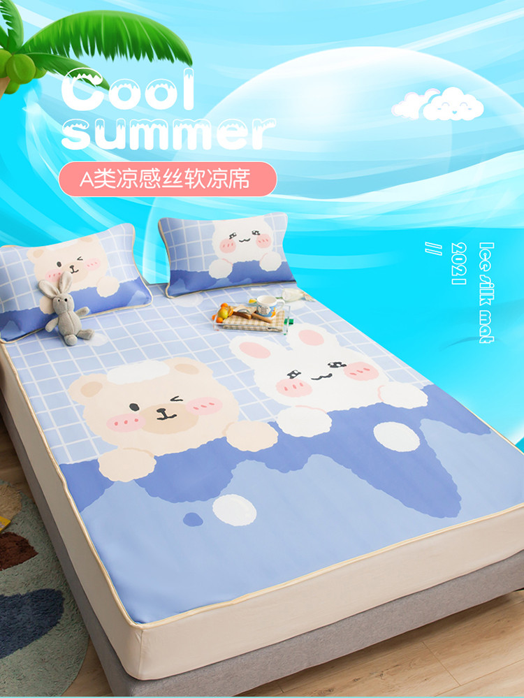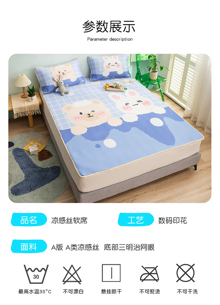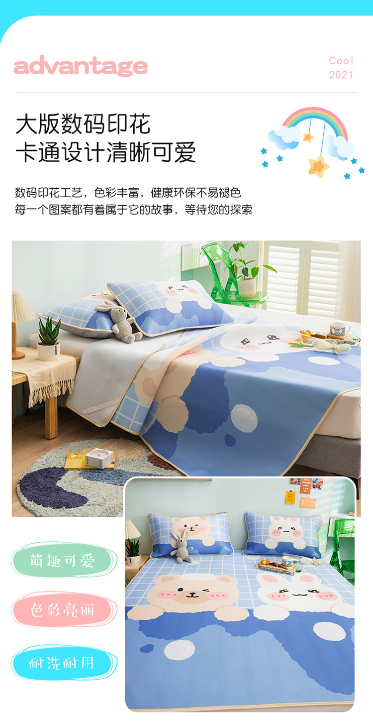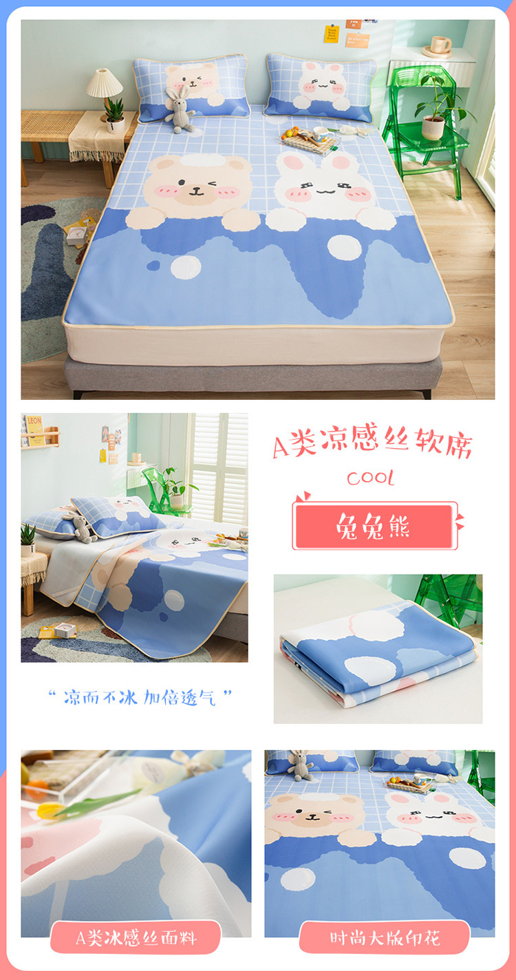 商品名称:塔塔 2025新款凉感丝大版印花软席凉席三件套 兔兔熊