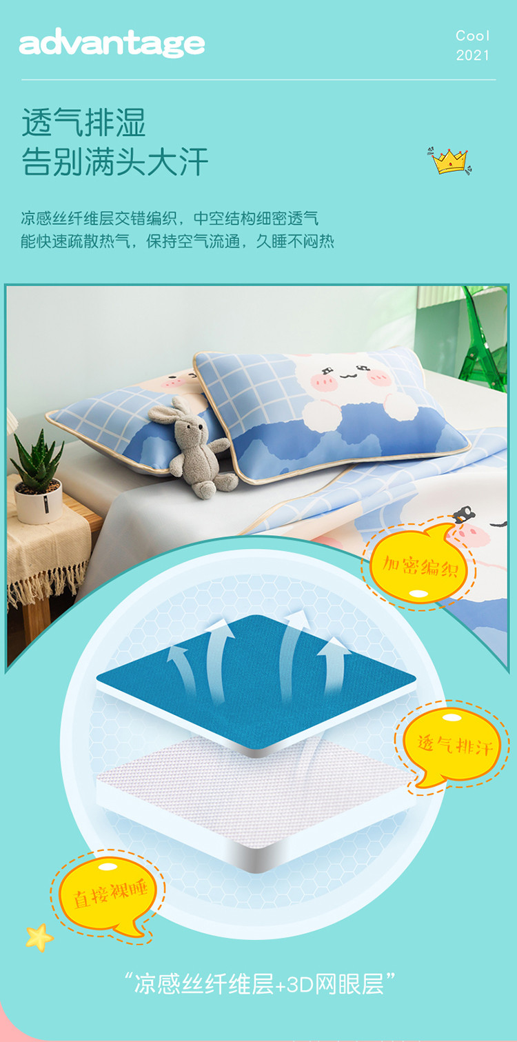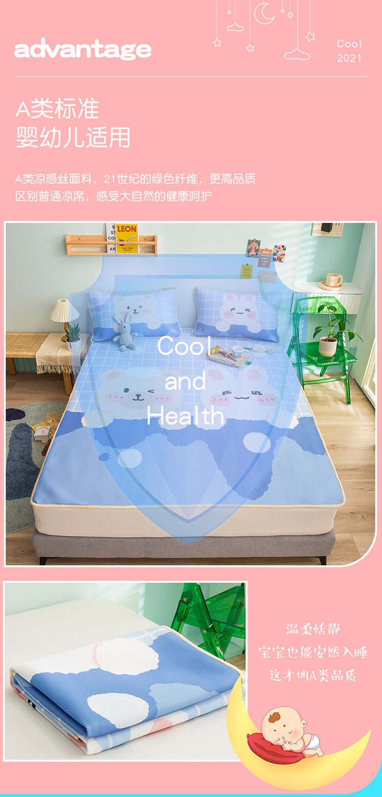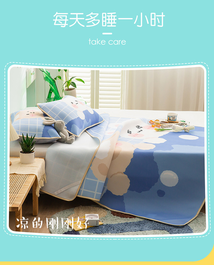 商品名称:塔塔 2025新款凉感丝大版印花软席凉席三件套 兔兔熊
